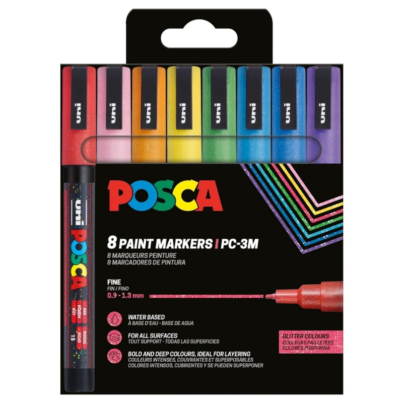 Comandă acum setul POSCA PC-3ML cu sclipici și adaugă strălucire ideilor tale creative!