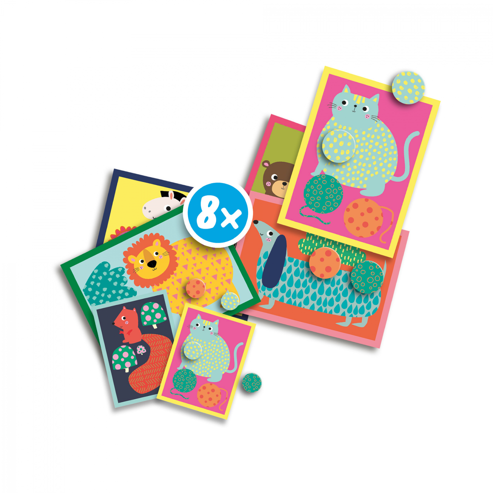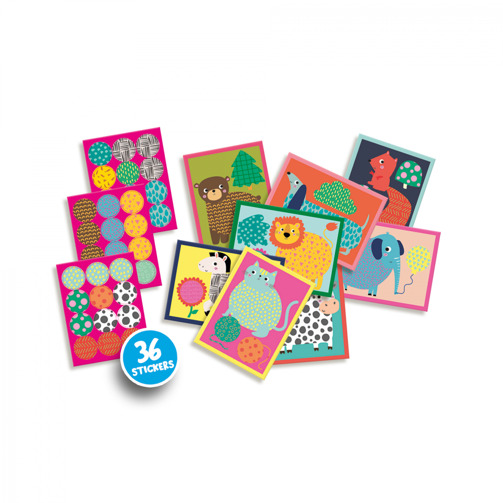 Ce gramada amuzanta de animale! Gasiti diferitele culori si modele de blana de animale pe foaia cu autocolante si lipiti autocolantele pe cartonase. Distractie cu autocolante pentru cei mai mici!