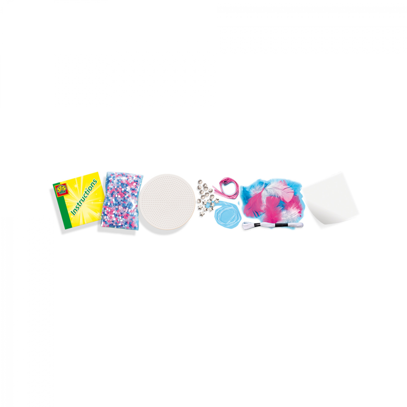 Acest set contine margele unice care stralucesc in intuneric si tot ce aveti nevoie pentru a face un aparator de vise frumos, cum ar fi pene, panglici, margele de argint.
