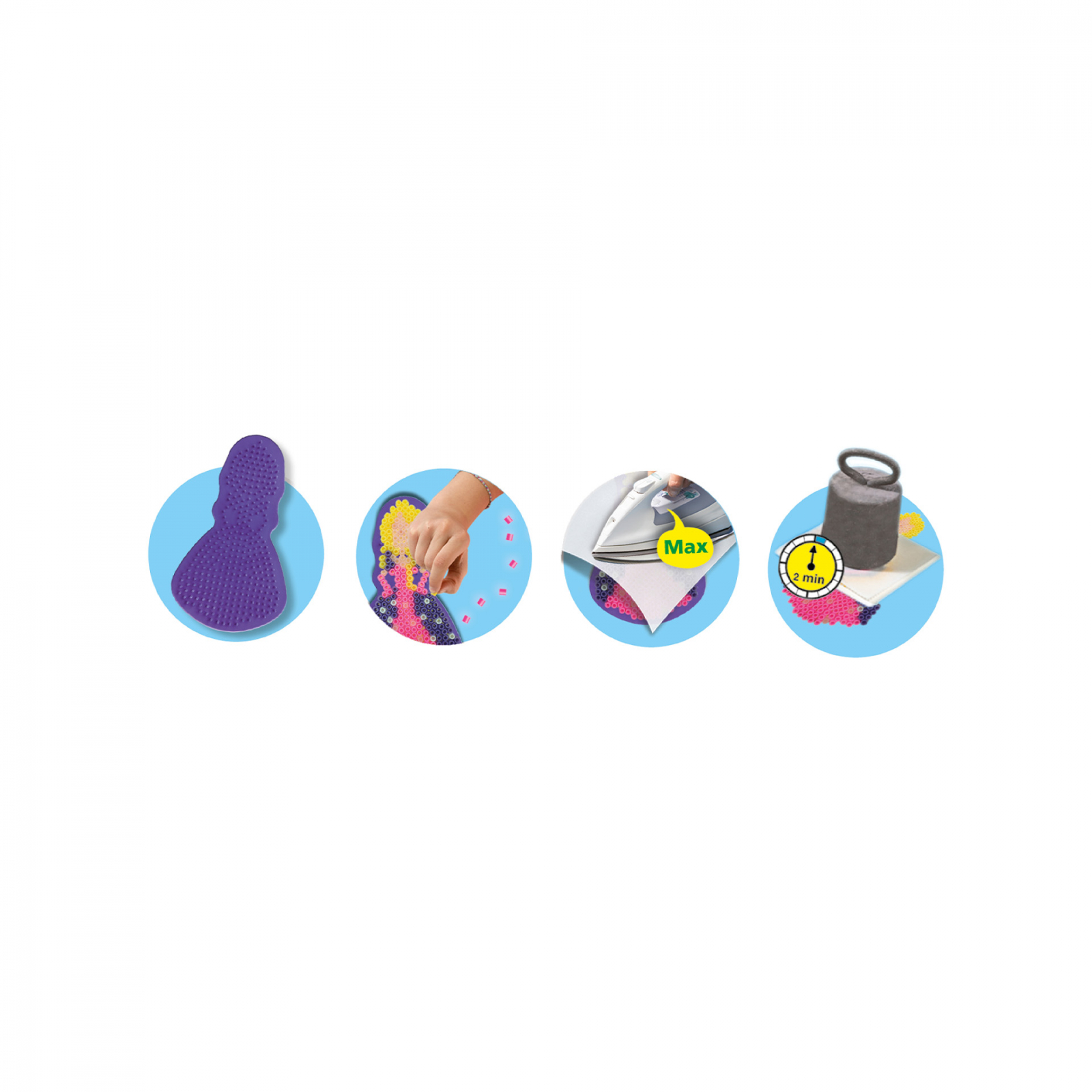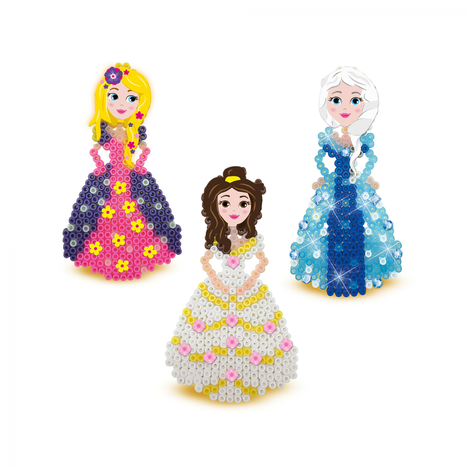 Cu acest set de calcat pe margele, poti face cu usurinta printese frumoase de calcat pe margele. Dupa calcat rochiile de printesa, decoreaza-le cu autocolante cu flori si diamante si lipeste-le pe fete pentru un rezultat realist.