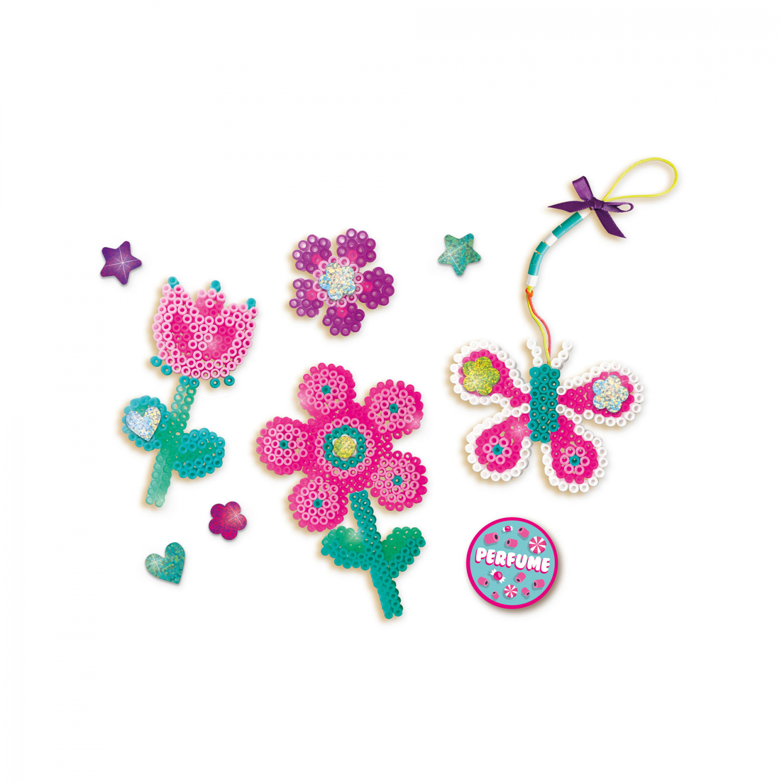 Acest set creativ copii Beedz – margele de calcat flori si inimi parfumate contine margele de calcat foarte speciale, parfumate. Creati fluturi, flori si multe altele minunate parfumate. Setul contine sase placi in diferite forme, precum si panglici si autocolante cu sclipici pentru adauga notele de finisare lucrarilor de arta.