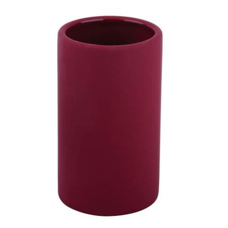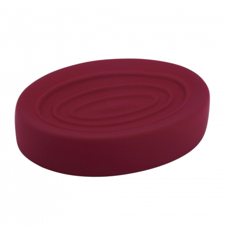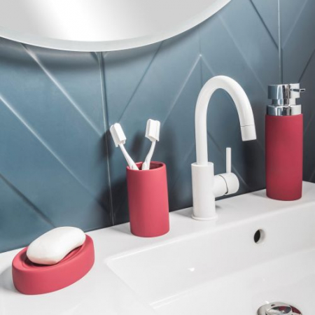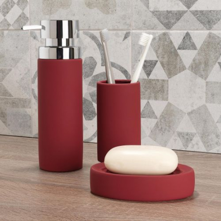 Set 3 accesorii pentru baie format din savoniera, dozator sapun si pahar igiena dentara, Ceramica cauciucata, Rosu