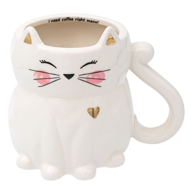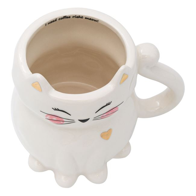 Cana Pisicuta 3D pentru copii,Ceramica,Alb,420 ml