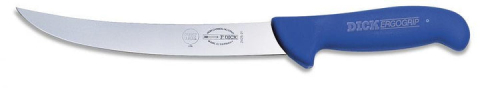 Cutit pentru macelari Dick Ergogrip 2425 - este folosit la alesul si transatul carnii. Are doua variante de lama: de 21 respectiv 26 cm. Flexibilitatea lamei este una medie, iar manerul este de culoare albastra si este construit cu sistem antialunecare.