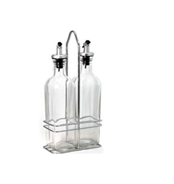 Setul contine 2 oliviere din sticla si un suport metalic pentru depozitare si transport usor. Dopul de inchidere manuala face ca scurgerea sa fie usoara si sigura.