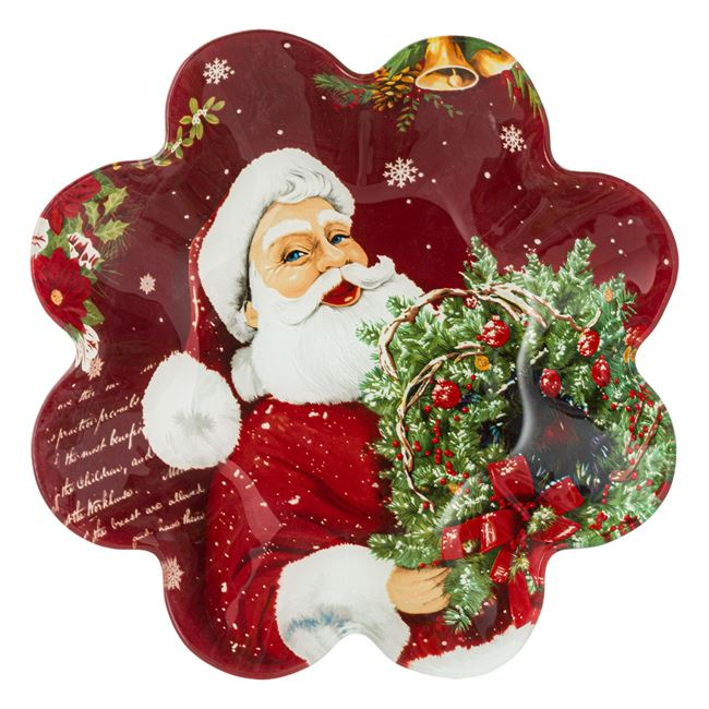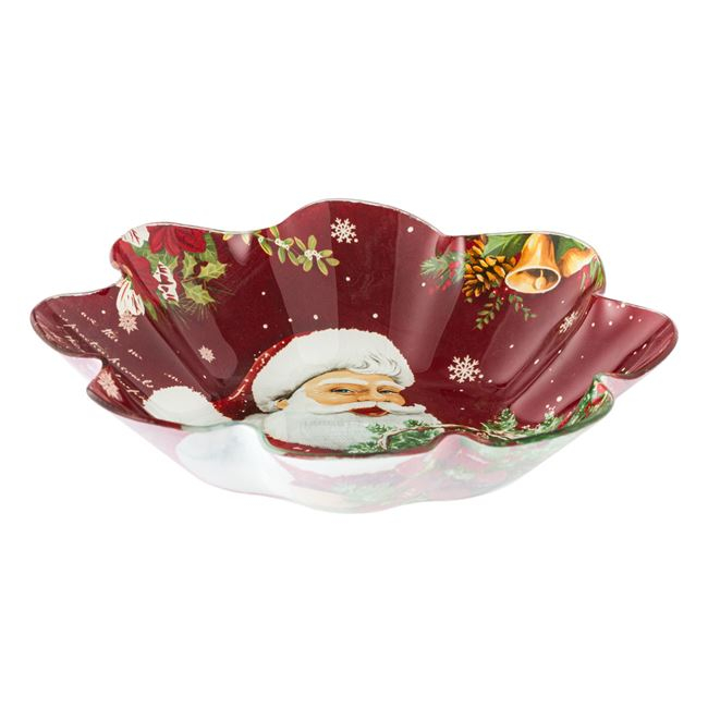 Bol pentru servire imprimeu Mos Craciun,Sticla,Rosu,23.5 cm