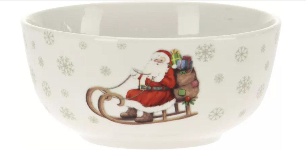 Bol pentru servire supa din portelan cu imprimeu Mos Craciun cu sanie.