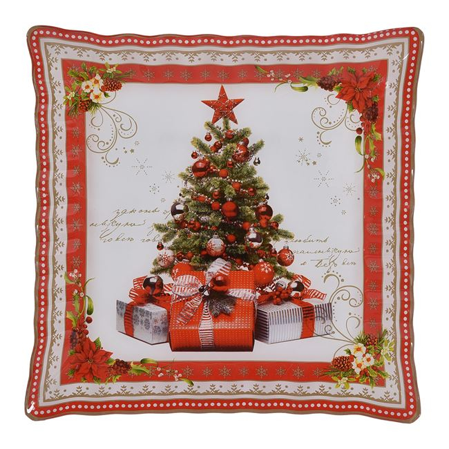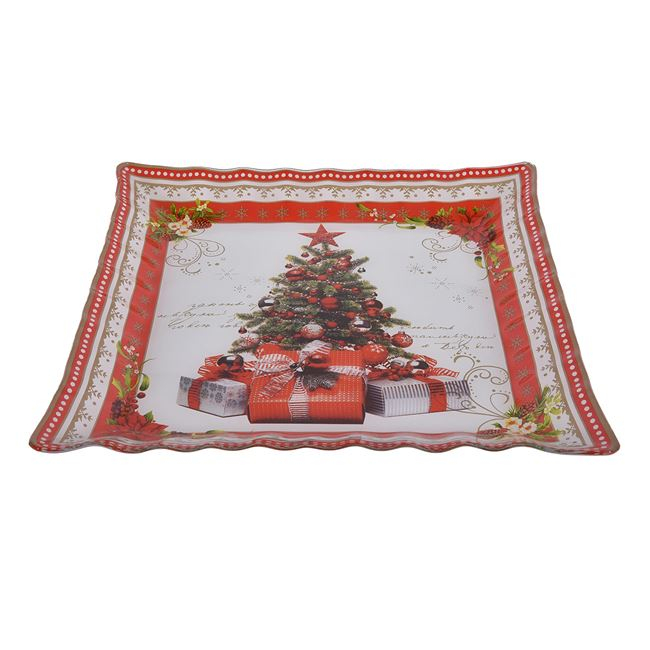 Platou patrat cu margine ondulata  pentru servire cu imprimeu Bradut.