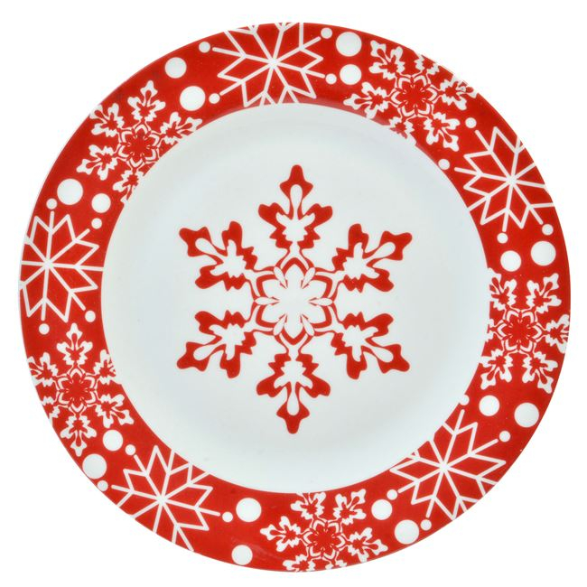 Platoul decorativ pentru mesele de Craciun cu imprimeu fulgi de nea este utilizat pentru servirea eleganta a diverselor prajituri, aperitive sau fructe.