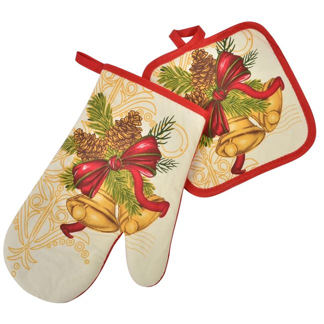 Set manusa si suport pentru cuptor- Imprimeu Clopotei