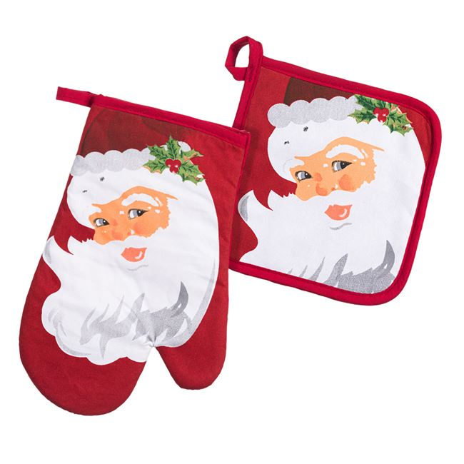 Set manusa si suport pentru cuptor- Imprimeu Mos Craciun