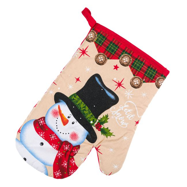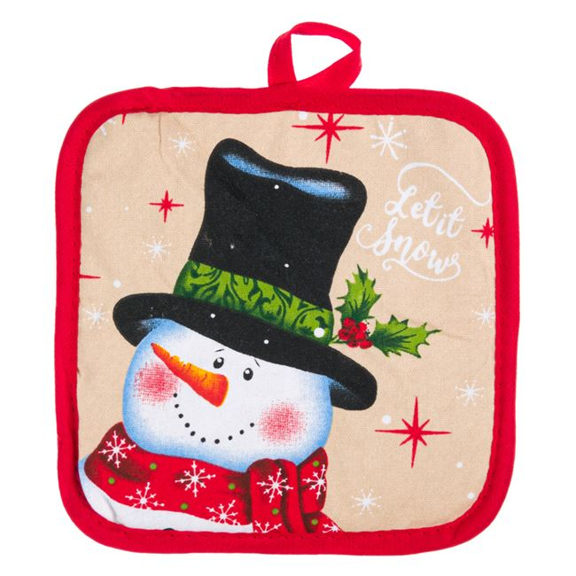 Set manusa si suport pentru cuptor- Imprimeu Om de zapada cu palarie