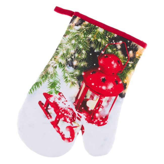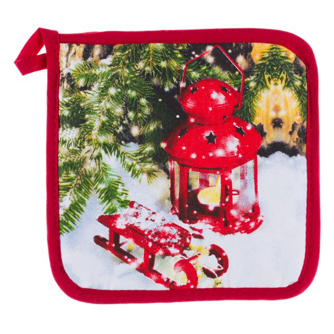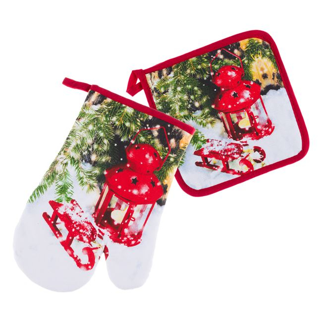 Set manusa si suport pentru cuptor- Imprimeu Sanie si felinar