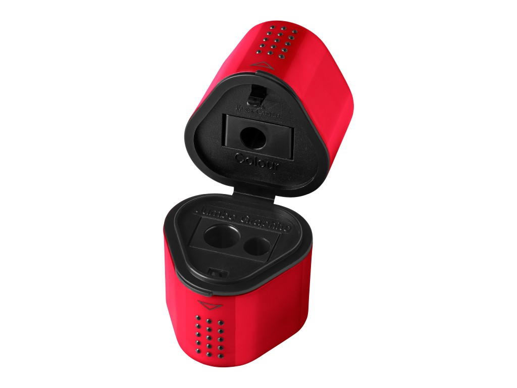 AscuțItoarea triplă Faber-Castell Grip 2001, disponibilă în culorile roșu sau albastru, este concepută pentru creioane grafit și colorate, standard și Jumbo. Are 3 orificii de ascuțire și două containere pentru reziduuri, amplasate pe ambele laturi. Forma triunghiulară ergonomică oferă confort și stabilitate. Practică, sigură și rezistentă – perfectă pentru școală sau birou.