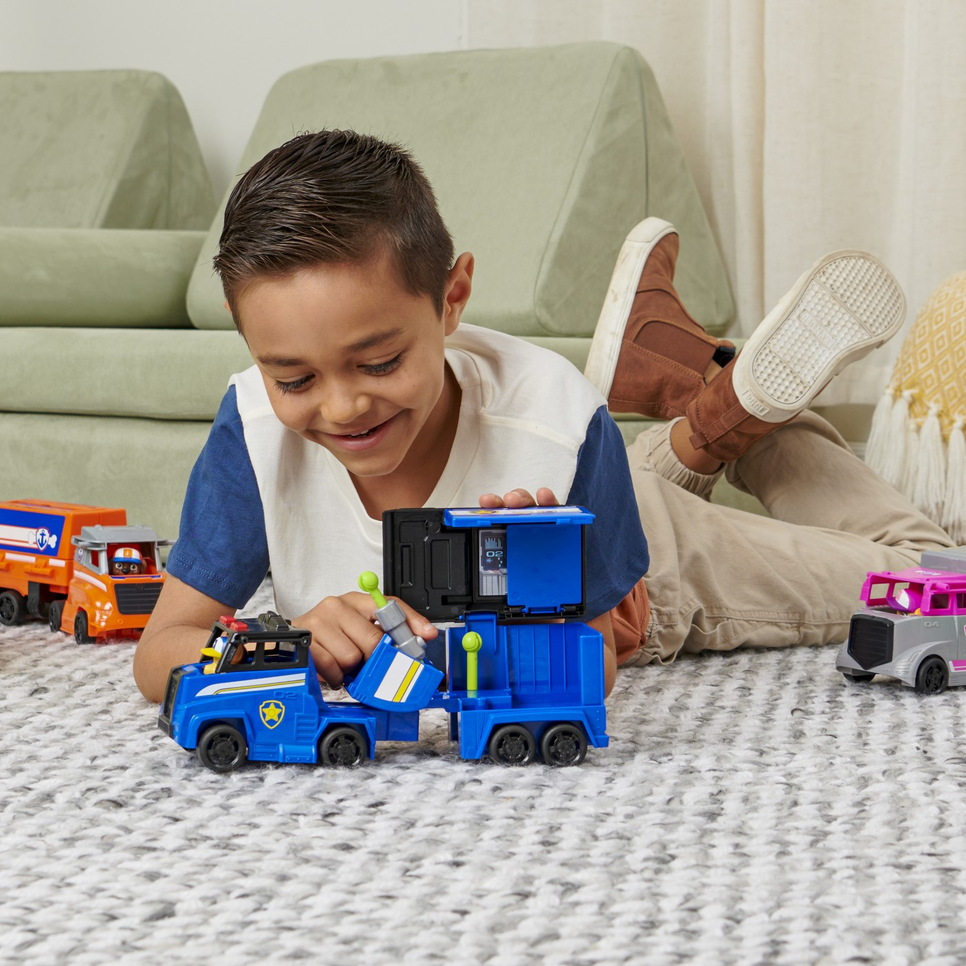Fa echipa cu Chase pentru salvari pe autostrada pline de actiune, in camionul sau Big Truck Pup - Rescue Truck! Camionul mare de salvare al lui Chase are o transformare interesanta a vehiculului. Pur si simplu ridica acoperisul cabinei camionului, pentru a-l urca si cobori pe Chase din scaunul soferului, apoi inclina remorca camionului inainte si ridica acoperisul remorcii pentru a activa modul centru de comanda, care transforma remorca camionului intr-un centru de comanda cu 2 etaje si dezvaluie lansatorul de proiectile de salvare, facandu-l vehiculul de salvare perfect pentru misiuni de salvare pe autostrada de mare viteza!