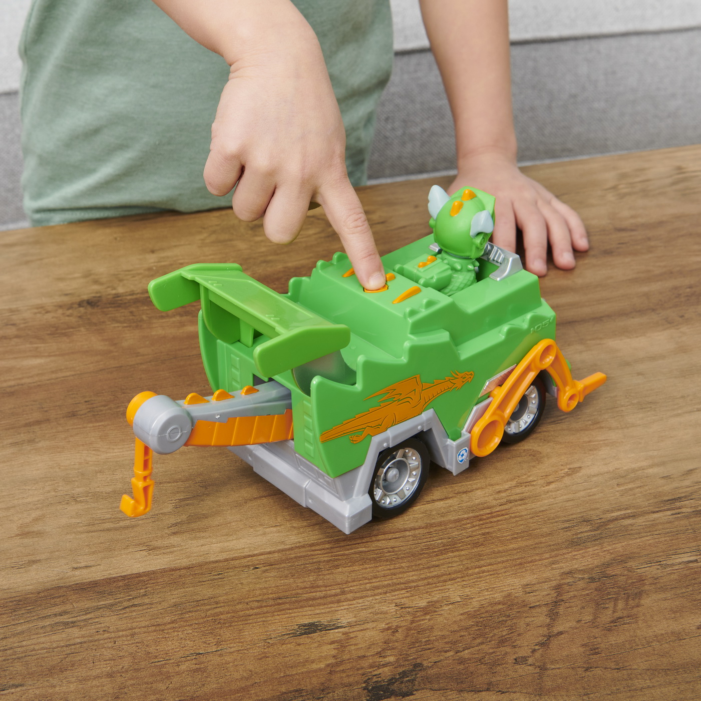 Formeaza echipa cu catelusii salvatori pentru misiuni captivante cu vehiculul de lux transformator al cavalerilor salvatori din Patrula Catelusilor! Vehiculul prezinta detalii si stiluri inspirate de dragon si o transformare interesanta a instrumentului de salvare. Echipat in armura sa de cavaler salvator, catelusul este gata sa rezolve lucrurile in Barkingburg. Cand un prieten dragon are probleme, pune catelusul la volan si fuga la salvat! Apasa in jos pe spoiler si un lansator va apare din spatele acestuia! Încarca proiectilele (doua sunt incluse) si apasa pe buton pentru a le lansa! Pune-ti la contributie imaginatia pentru a crea salvari medievale impresionante, la fel ca cele din serialul de succes. Pentru mai multa distractie de marimea unui dragon, cauta Cartierul General al Castelului si colectioneaza toate vehiculele de lux ale cavalerilor salvatori din patrula catelusilor (setul de joaca si vehiculele de jucarie se vand separat)! Acest pachet contine personajul Rocky.