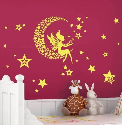 Autocolant fosforescent pentru perete, Design Zana cu stelute