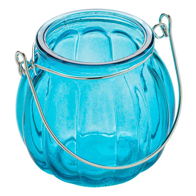 Borcan decorativ tip vaza cu maner,sticla,albastru,7.5x8 cm