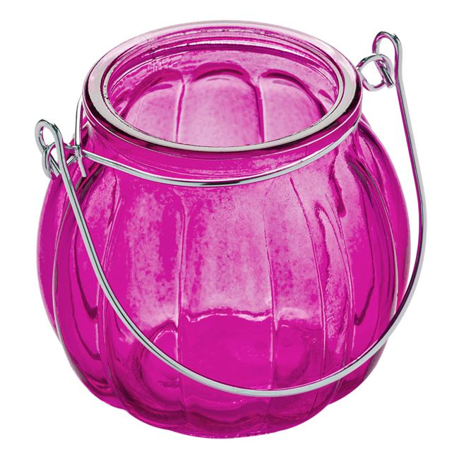 Borcan decorativ tip vaza cu maner,sticla,fucsia,7.5x8 cm