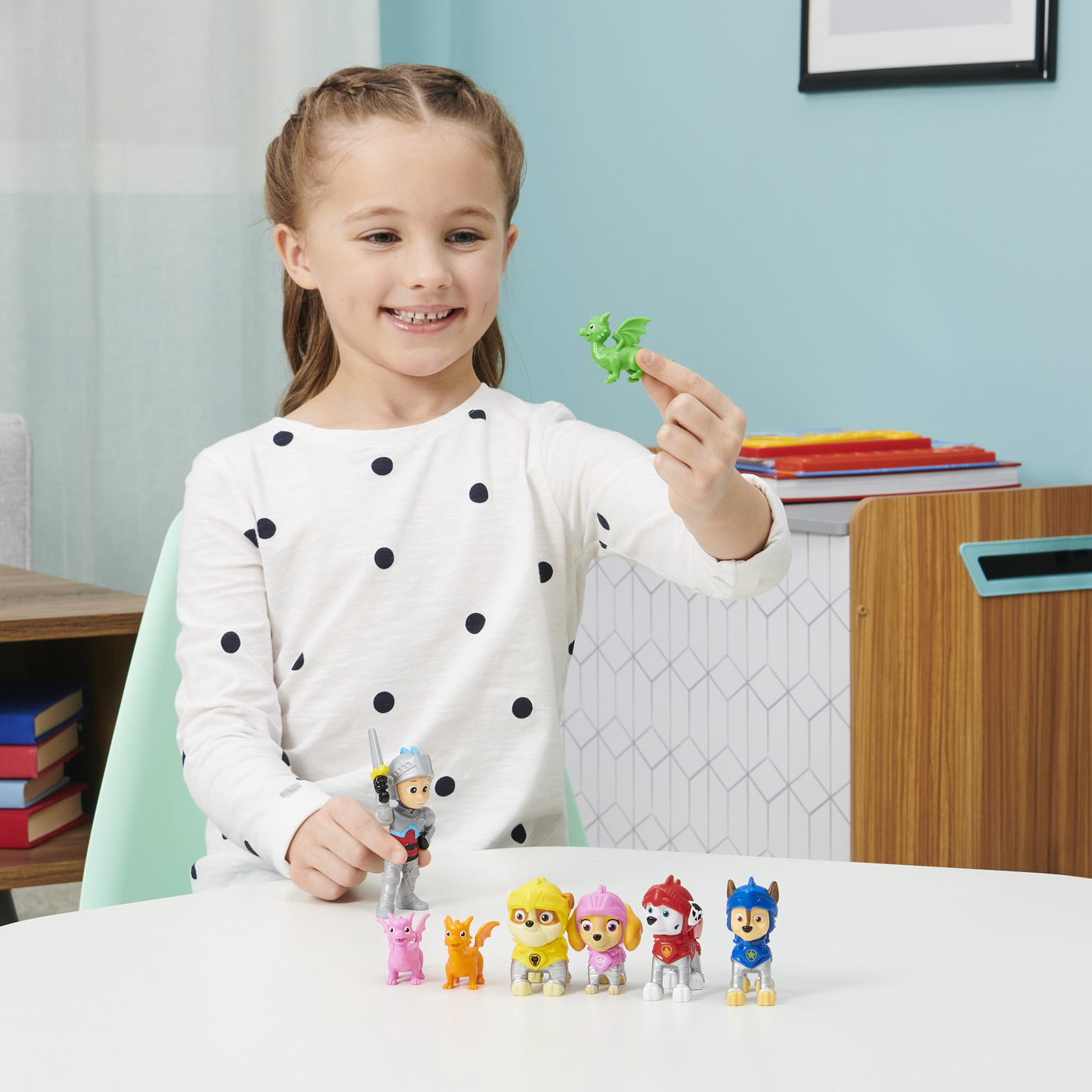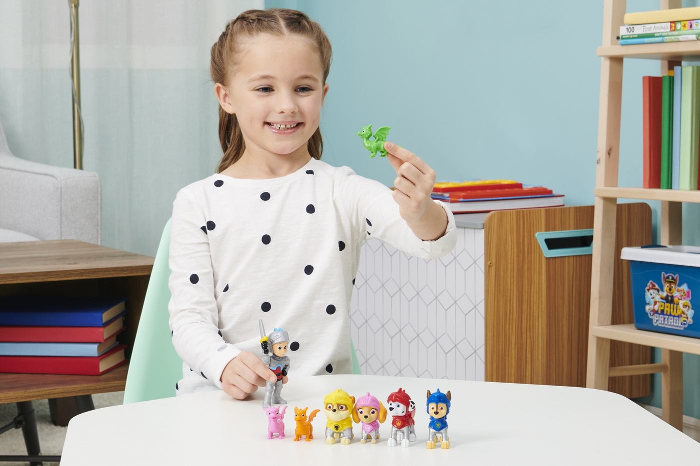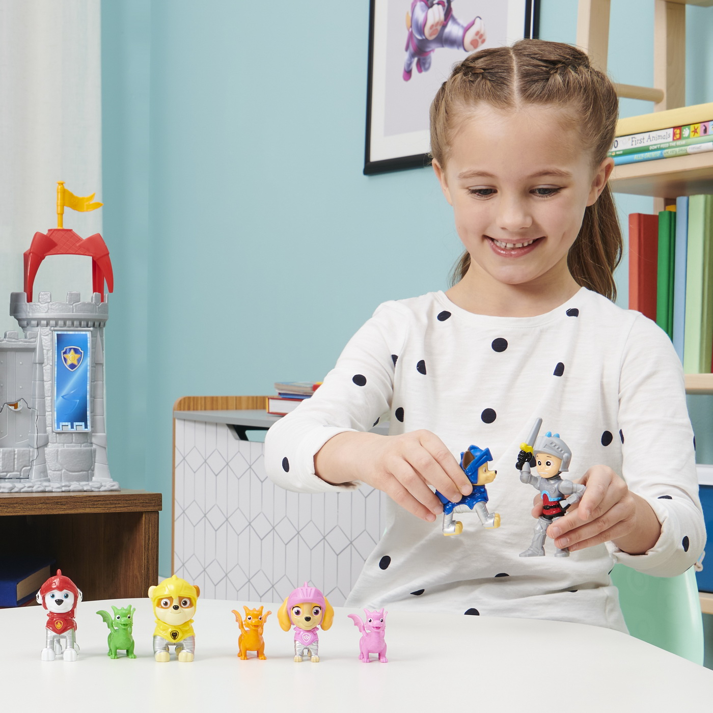 Pregateste-te pentru misiuni medievale pline de actiune cu pachetul cadou de salvare Ryder din Patrula Catelusilor si catelusii salvatori! Acest uimitor pachet de colectie de figurine din Patrula Catelusilor include o figurina exclusiva Ryder pe care nu o vei gasi nicaieri altundeva, alaturi de Chase, Marshall, Rubble, Skye si trei mini prieteni dragoni colorati! Echipati in armura lor de cavaleri salvatori, Ryder si cateii sunt gata sa intre in actiune si sa va ajute sa va creati propriile misiuni de salvare a dragonilor, exact asa cum ati vazut in serial. Acest set este modalitatea perfecta de a va extinde colectia Patrula Catelusilor si este un cadou minunat pentru copiii cu varsta de 3 ani si peste. Pentru si mai multe aventuri medievale cu Ryder si cateii, joaca-te cu noile tale figurine din Patrula Catelusilor cu setul de joaca cavalerii salvatori ai cartierul general al castelului (vandut separat). Adu acasa pachetul cadou Cavalerii salvatori din Patrula Catelusilor si formeaza echipa cu Ryder si cateii pentru a ajuta la salvarea zilei!