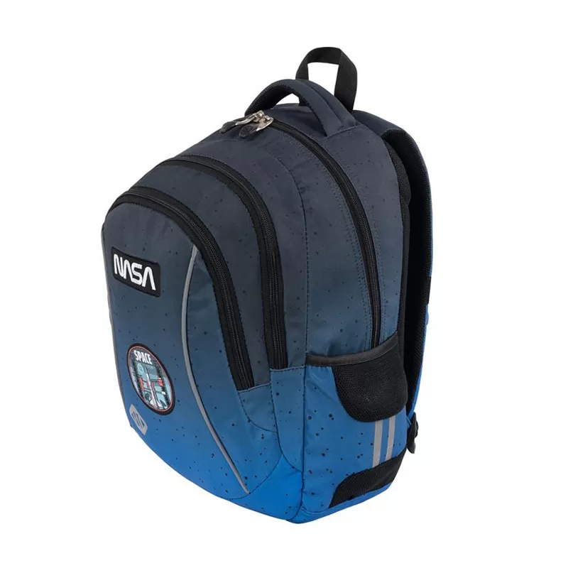 Ghiozdanul este deosebit de incapator, cu o compartimentare excelenta, avand spatii pentru carti, caiete, accesorii si rechizite, asigurand astfel o foarte buna organizare. Prevazut cu un compartiment principal ce se inchide cu doua fermoare si doua compartimente frontale ce se inchid cu fermoar, ghiozdanul este deosebit de spatios si practic.