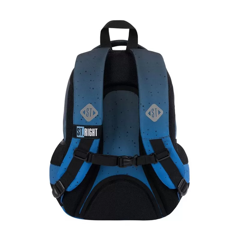 Ghiozdanul este prevazut cu un maner buretat pentru a putea fi purtat si in mana. Spatele si bretelele sunt intarite si buretate cu un burete gros, oferindu-le fermitate si avand rolul de a proteja umerii si spatele. Spatele ghiozdanului este buretat ergonomic, dotat cu o zona de contact cu plasa, pentru o buna circulatie a aerului. Bretelele ghiozdanului sunt ajustabile, pentru ca acesta sa poata fi aranjat perfect pe spate. Fermoarele au zona de prindere cauciucata si profilata, pentru prindere usoara. Cheitele fermoarului compartimentului principal permit utilizarea unui lacat sau a unei criptari TSA. Baza ghiozdanului are zone de contact cauciucate pentru protejare la umezeala. Dimensiunile ghiozdanului sunt urmatoarele: 40x26x13 cm.