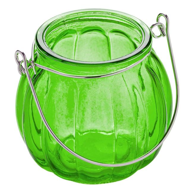 Borcan decorativ tip vaza cu maner,sticla,verde,7.5x8 cm