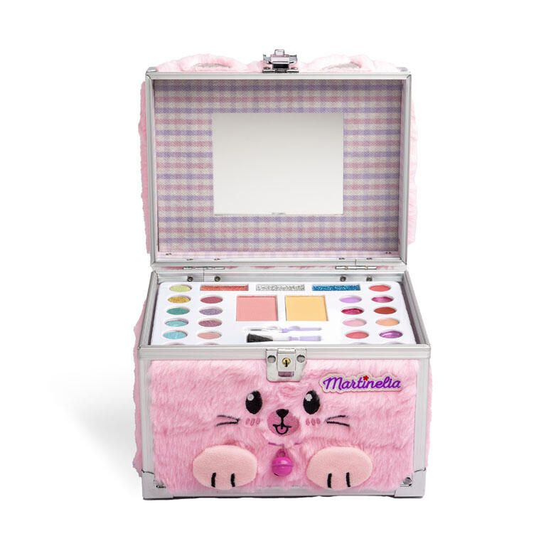 Descopera Trusa Meowgical de machiaj din colectia Lulu si Duki. Aceasta trusa adorabila include 11 farduri de pleoape, 11 luciuri de buze, 3 farduri de pleoape cremoase cu sclipici, 2 blush-uri, 2 pensule si 1 aplicator. Perfecta pentru ca cei mici sa se distreze jucandu-se si creand look-uri magice, simtindu-se insotiti de prietenii lor dulci, pisicute. Tot ce au nevoie pentru a straluci se afla in aceasta trusa fermecatoare.