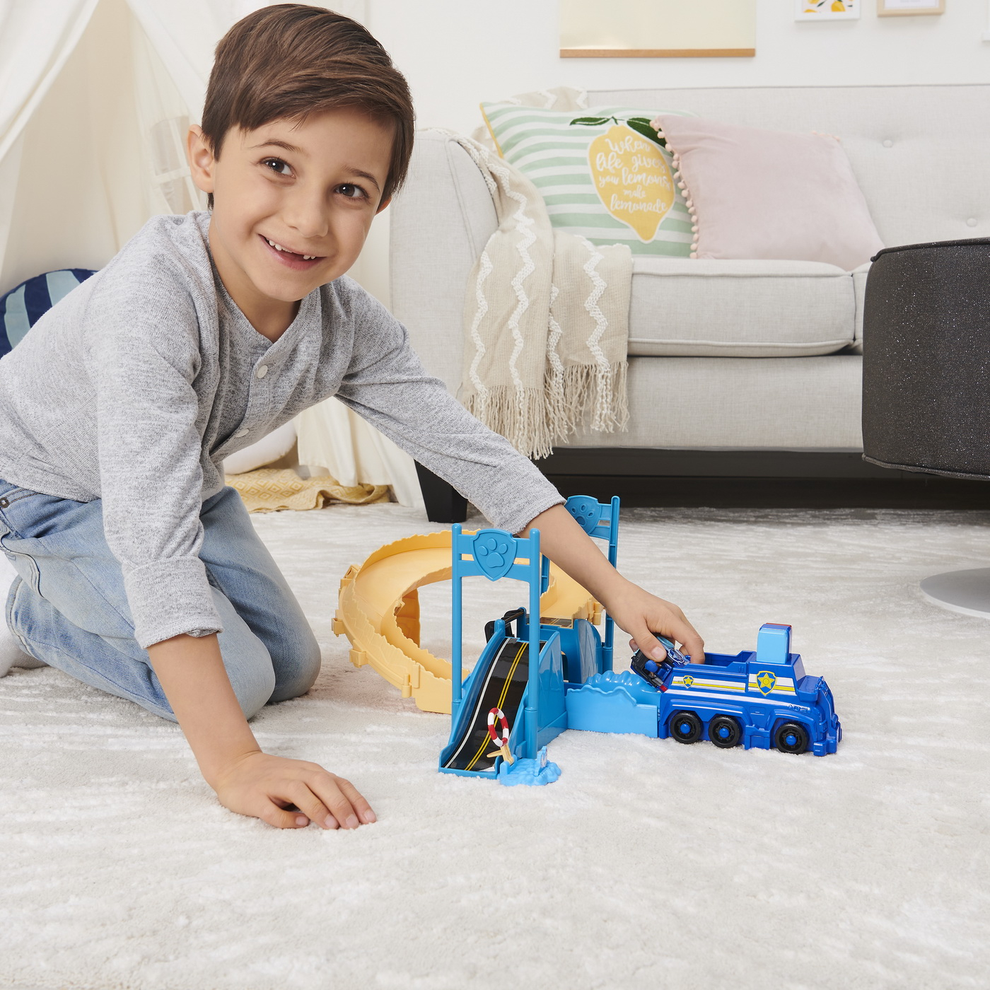 Repara podul din Golful Aventurilor si fugi sa o salvezi pe Chickaletta cu setul cadou de metal adevarat puternic Patrula Catelusilor! Acest set incitant de piste functioneaza cu vehiculele de metal adevarat Patrula Catelusilor la scara 1:55 (fiecare vandute separat) si include un vehicul turnat Chase cu roti albastre si detalii cu apa si un lansator detasabil pentru nava. Încarca-ti vehiculul exclusiv in lansator, apoi loveste ca sa-l trimiti pe Chase in actiune - vehiculul lui Chase goneste in jurul pistei, reparand podul! Cand vehiculul lui Chase ajunge in partea de jos a podului, un colac de salvare este lansat catre Chickaletta, salvand-o din apa! Pentru a reseta, ridica inapoi colacul de salvare, impinge inapoi podul si porneste in cursa de salvare din nou si din nou! Cu roti functionale, detasati lansatorul de pe setul de piste si patrulati prin Golful Aventurii. Pentru o distractie cu viteza si mai mare, colectati toate vehiculele de metal adevarat din Patrula Catelusilor (fiecare este vanduta separat)! Participa la propriile misiuni de salvare incitante din Golful Aventurii cu setul cadou de metal adevarat puternic Patrula Catelusilor!
