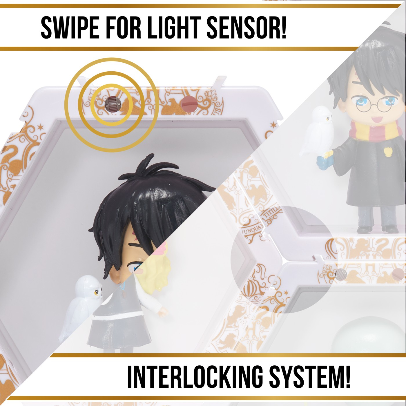 Fiecare personaj este situat in propriul POD in forma de hexagon cu lumini UV si senzor IR incorporat. Pur si simplu miscati mana peste senzor pentru a lumina WOW-ul! POD-ul! Misca-ti mana in fata POD-ului pentru a-l lumina si a dezvalui pictograme ascunse in spatele WOW!Pod-ului! Lumina se stinge automat dupa 30 de secunde. Conectati-le in cateva secunde! Colectia ta poate lua diferite forme si avea in fiecare zi, alt look! Limita e doar de imaginatia ta! Puteti chiar sa va scrieti numele sau initialele pentru a crea un afisaj care este fara indoiala si unic al dvs.! Colectionati si conectati personajele favorite printr-o colectie mai vasta de eroi WOW! PODS! Sunt disponibile personaje : Marvel, DC, Disney, Disney Frozen, Sonic, Jurassic World, Harry Potter, Minionii si altele. Acest pachet contine personajul Harry si Hedwig.