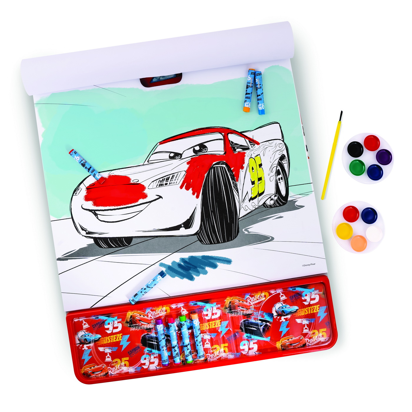 Setul pentru desen Giga Block 4 in 1 pune la dispozitia copilului 8 creioane cerate, 10 culori de acuarela, autocolante, 1 pensula si sabloane cu eroul preferat Fulger McQueen. Cu acest set, copilul poate desena, decora, colora, si crea adevarate opere de arta, beneficiind de un joc relaxant si creativ. Prin desen, copilul va putea invata culorile si nuantele, formele si notiunea de marimi. Setul reprezinta o idee de cadou perfect pentru fiecare copil care iubeste distractia creativa.Valori dezvoltate: dexteritatea, creativitatea, coordonarea mana-ochi, capacitatea de concentrare si rabdarea. Potrivit pentru copiii de la 3 ani.