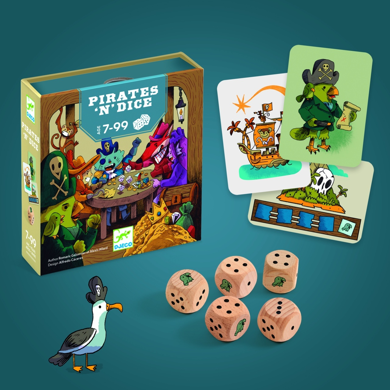 Joc de noroc și strategie Comoara Piratului Aventura începe la taverna Black Parrot, unde micii pirați se pot întrece în noroc și strategie pentru a câștiga comoara ascunsă. Aruncă zarurile, plasează pariuri curajoase și strânge cât mai multe monede de aur – dar ai grijă, norocul se poate schimba oricând! Un joc plin de suspans și interacțiune, care combină șansa cu spiritul de competiție. Scopul este simplu, dar captivant: fii primul care adună 20 de piese de aur! Jocul conține 5 zaruri, 62 de cărți de joc, reguli de joc. Pentru serile în familie sau pentru distracție cu prietenii, acest joc antrenant dezvoltă gândirea strategică, răbdarea și bucuria jocului de echipă. Pentru pâna la 12 jucători. Vârstă recomandată : 7 - 99 ani. 🌱 Fabricat din hârtie, lemn și carton certificate FSC®, pentru o joacă responsabilă și sustenabilă. Conform reglementărilor EN71&ASTM. AVERTISMENT: Contraindicat copiilor mai mici de 3 ani, conține piese mici, pericol de sufocare. A se folosi sub directa supraveghere a unei persoane adulte. Producă tor: D jeco, F ranța