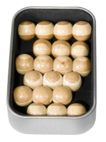 Joc logic IQ din lemn bambus Pyramid, cutie metal