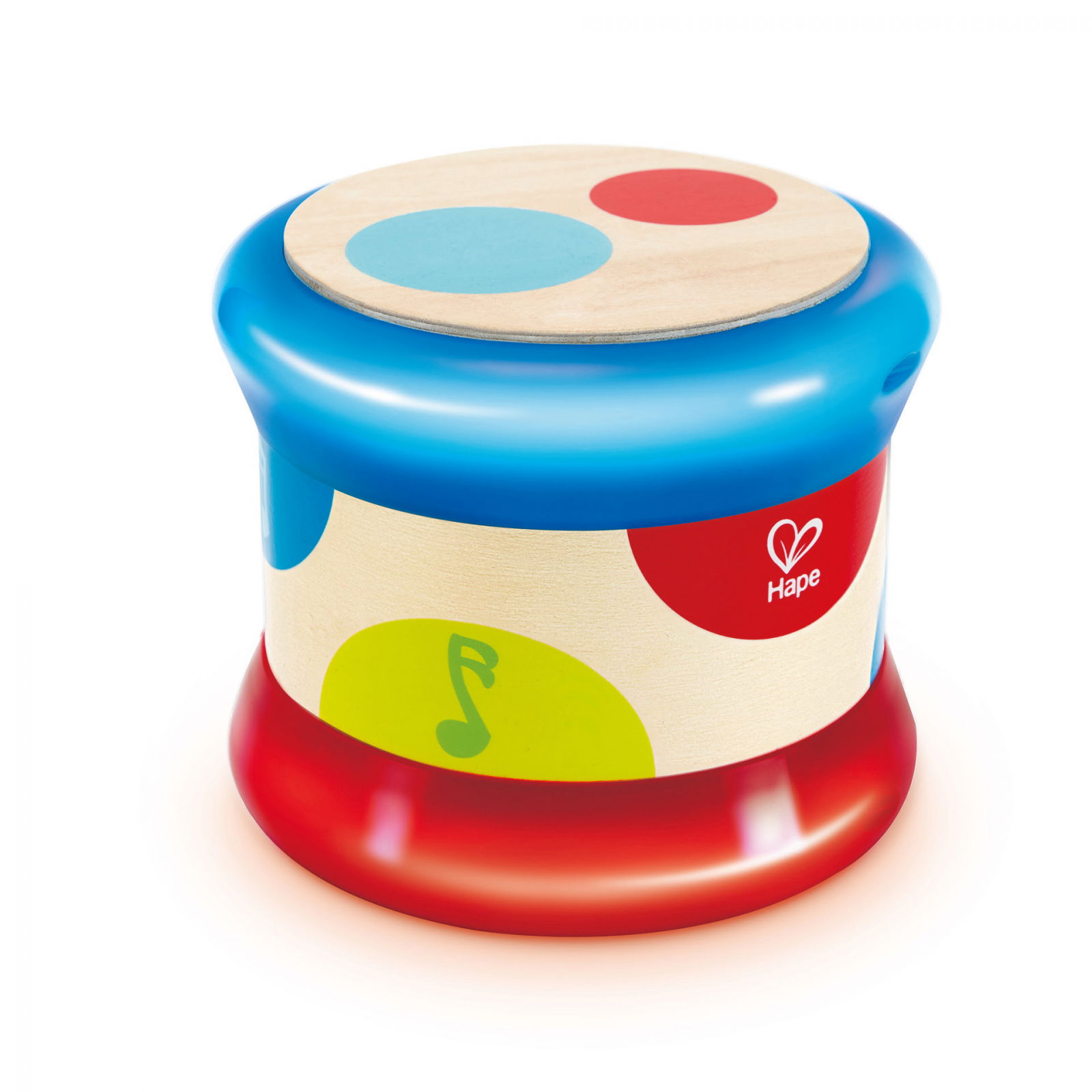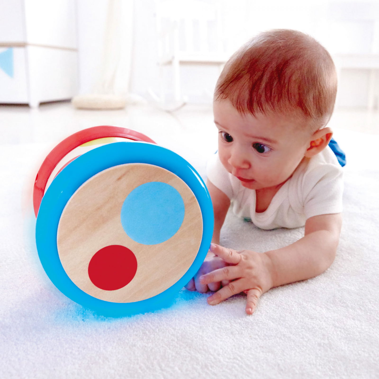 Cel mai probabil copilul tau va incerca sa se joace cu aceasta in mai multe moduri, asa ca am creat o singura toba care poate face totul. Cand este in picioare, tamburul poate fi batut, fiecare cerc colorat emite un sunet diferit si declanseaza o lumina colorata. Cand este rulat, tamburul emite lumini si muzica orbitoare.