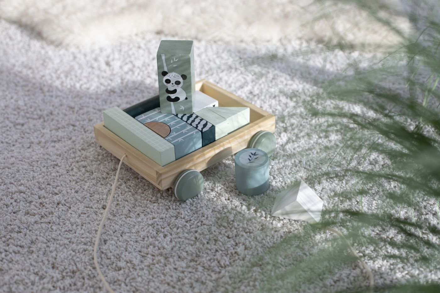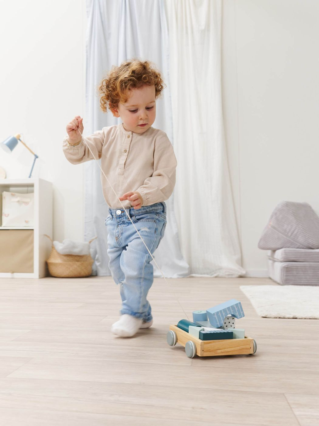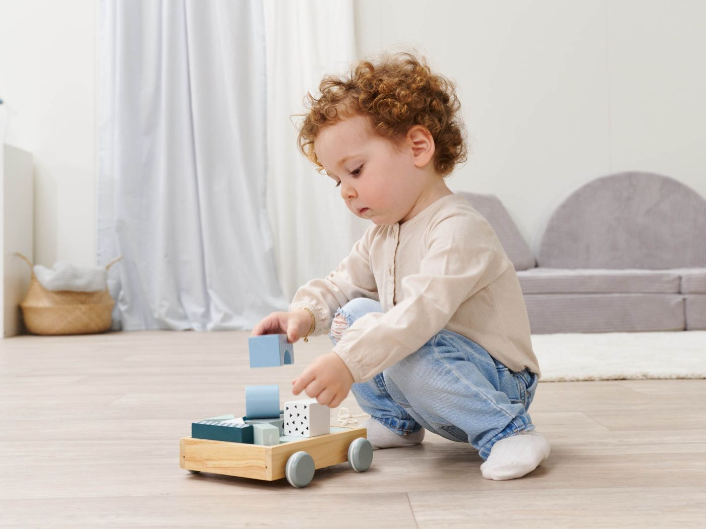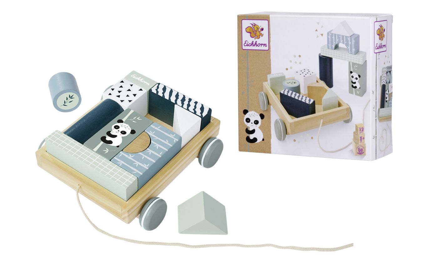 Remorca de constructii Eichhorn este o jucarie versatila si educativa, conceputa pentru a stimula creativitatea si indemanarea celor mici inca de la varsta de 1 an. Realizata din lemn de inalta calitate si avand un design modern, remorca vine echipata cu 11 blocuri de constructie in forme si culori variate, ideale pentru activitati de sortare, empilare si constructie. Aceste blocuri ii ajuta pe copii sa isi dezvolte motricitatea fina, coordonarea mana-ochi si gandirea creativa intr-un mod natural si distractiv. Remorca masoara 18 x 17,5 cm si este usor de tras datorita snurului integrat, fiind perfecta pentru joaca mobila prin casa. Rotile din lemn sunt prevazute cu jante din silicon, ceea ce le face silentioase, stabile si sigure pentru toate tipurile de pardoseala, fara a lasa urme. Cu un aspect atragator si elemente grafice delicate, inclusiv adorabilul panda caracteristici colectiei, remorca de constructii Eichhorn devine rapid o jucarie preferata, potrivita atat pentru joaca zilnica, cat si pentru dezvoltarea abilitatilor esentiale ale copilului.