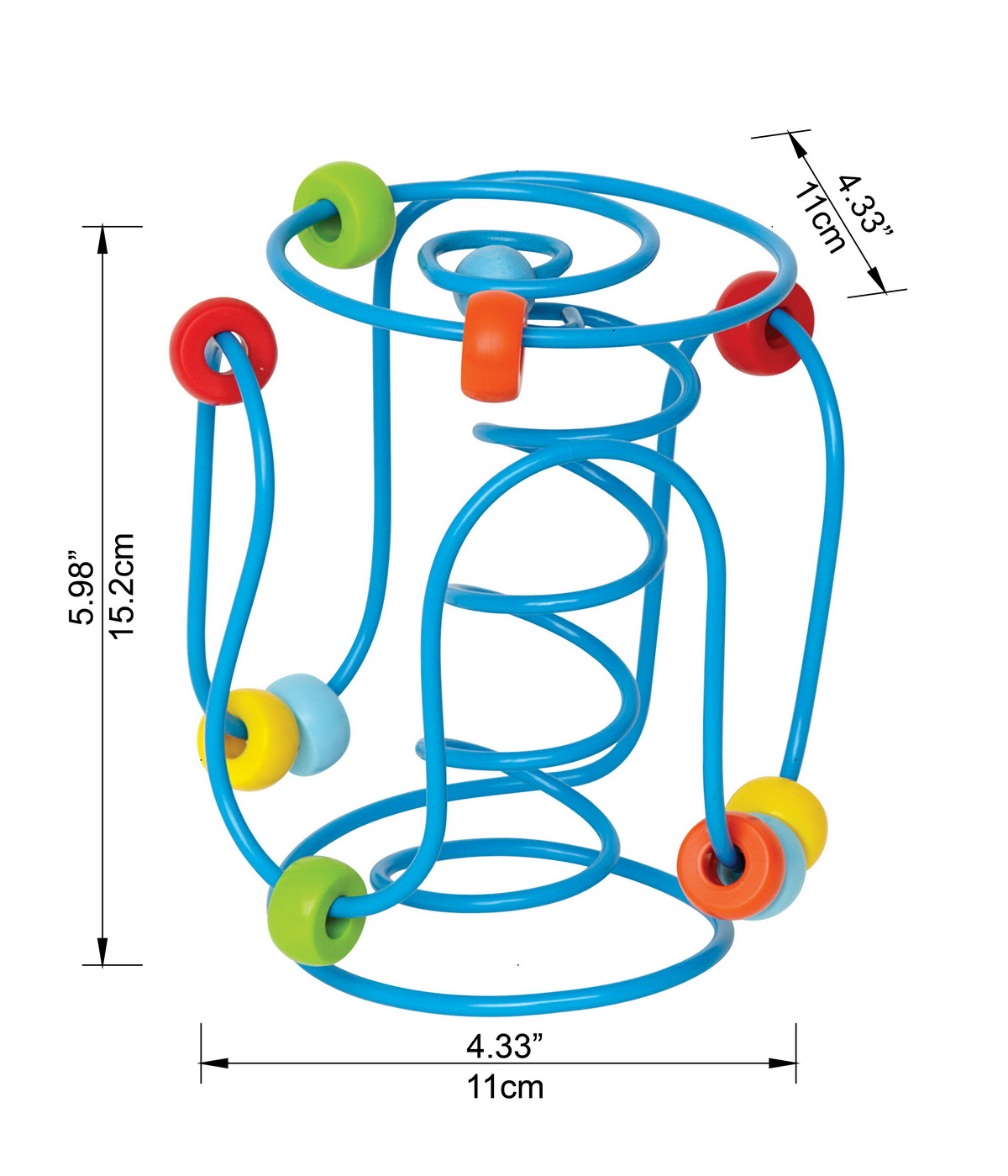 Aceasta jucarie este special conceputa pentru nevoile celor mici, fiind confectionata din materiale naturale. Buclele simple si curbele metalice colorate stimuleaza jocul interactiv. Cercurile din lemn de diferite dimensiuni sunt distractive, dar si educative, in acelasi timp, aratand conceptul de “interior/exterior". Labirintul dezvolta simtul tactil si vizual al copilului. Jucariile sunt realizate din lemn, folosind materiale ecologice, vopsite in culori atragatoare cu vopsele nontoxice, care depasesc cele mai inalte si stricte standarde internationale de siguranta si calitate, precum EN71, ISO9001, ASTM F963 si altele. De multi ani, Hape a creat jucarii fantastice, de inalta calitate, folosind materiale ecologice si durabile, fiecare produs fiind atent proiectat pentru a stimula abilitatile senzoriale, fizice si emotionale.
