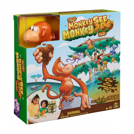 Daca maimuta vede, atunci maimuta face caca. si in acest joc, la fel vei face si tu. Totul este despre BANANE in acest joc amuzant, cu maimute care se catara prin copaci, fac caca si tanjesc dupa banane. Este un joc de masa vertical pentru copii, doldora de „caca“, care se joaca in 2–4 jucatori si dureaza aproximativ 25 de minute. Te va distra atat „caca“ cu aroma de banane, cat si instructiunile de asamblare clare si explicite, pentru o instalare usoara. Cuprinde 1 maimuta aruncatoare (7 buc.), 4 maimute cataratoare, 4 clipsuri de catarare, 5 buchete de banane, 5 clipsuri pentru buchete de banane, 15 pioni banane, 1 container de aluat pentru maimute, 4 liane verzi de sfoara, 1 masa spinner, 1 sageata si tarus spinner, 1 masa de joc tip copac, (4 buc.), 1 foaie de asamblare