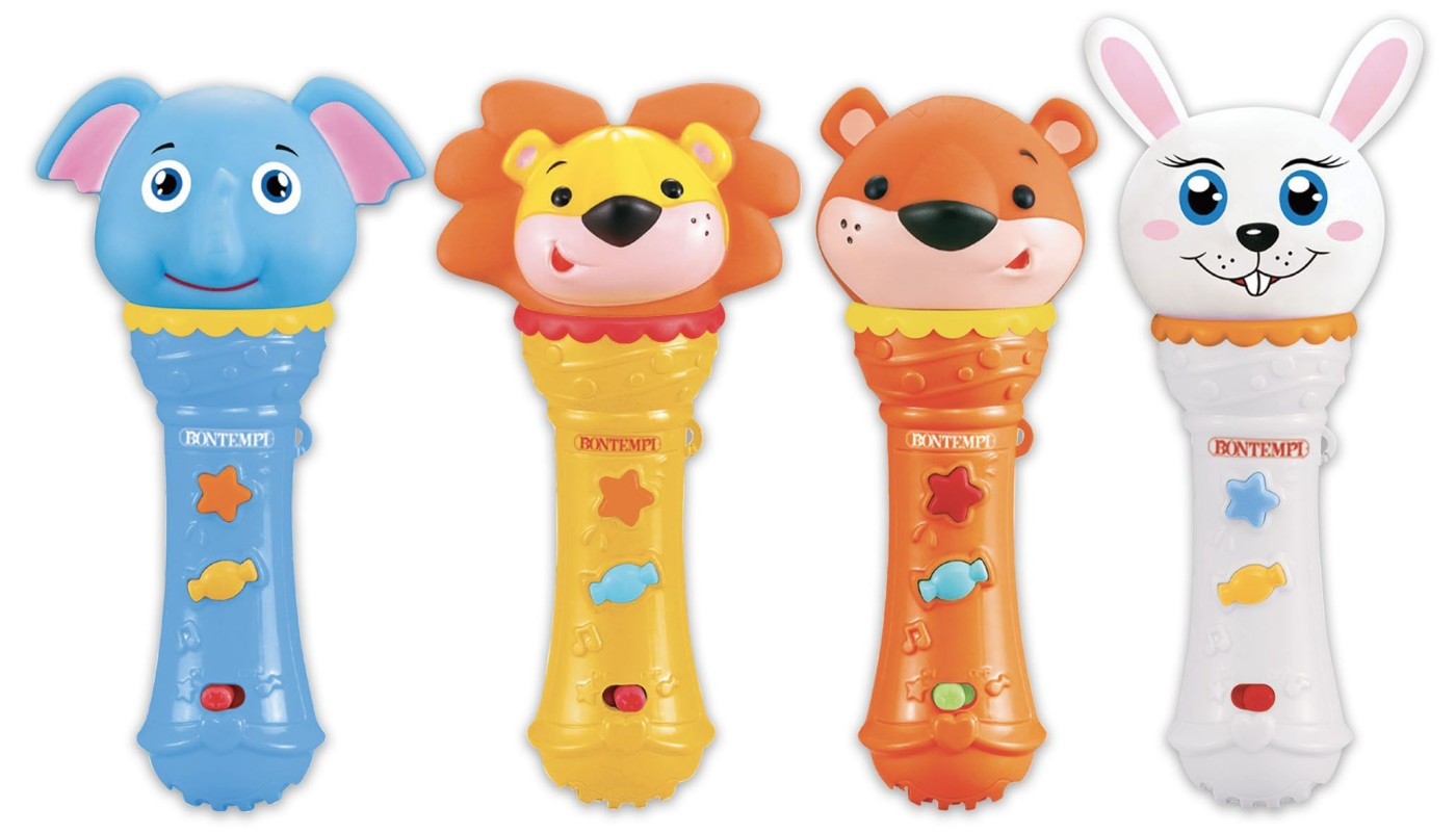 Microfon pentru bebelusi cu 12 melodii preinregistrate, efecte de fluier si aplauze. Efecte de iluminare, conexiune la MP3 player, smartphone, iPod, CD player, cablu nu este inclus.