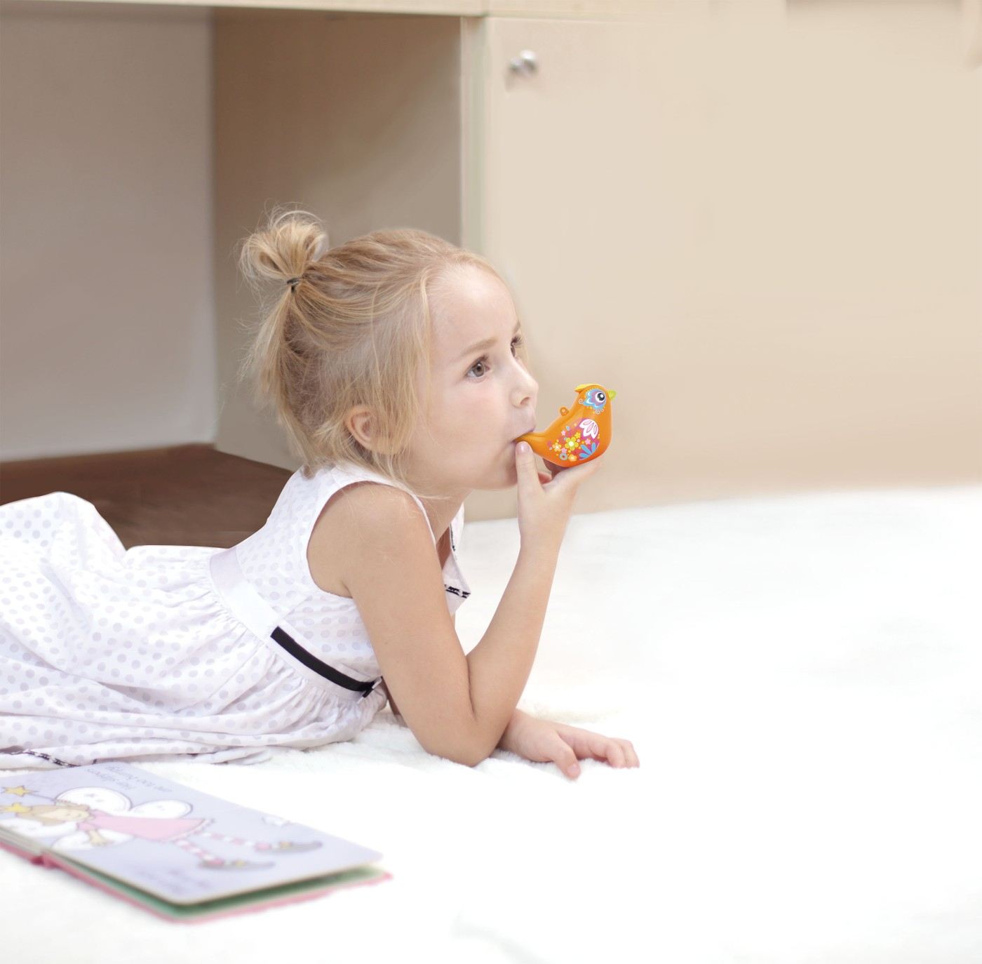Jucarie Interactiva pentru Copii. Fluier in Forma de Pasare in Culori Vibrante, din Plastic, ce se umple cu apa. Ajuta la imbunatatirea abilitatilor motorii, a coordonarii ochi-mana Perfect pentru dezvoltarea imaginatiei si a dexteritatii manuale a copiilor.
