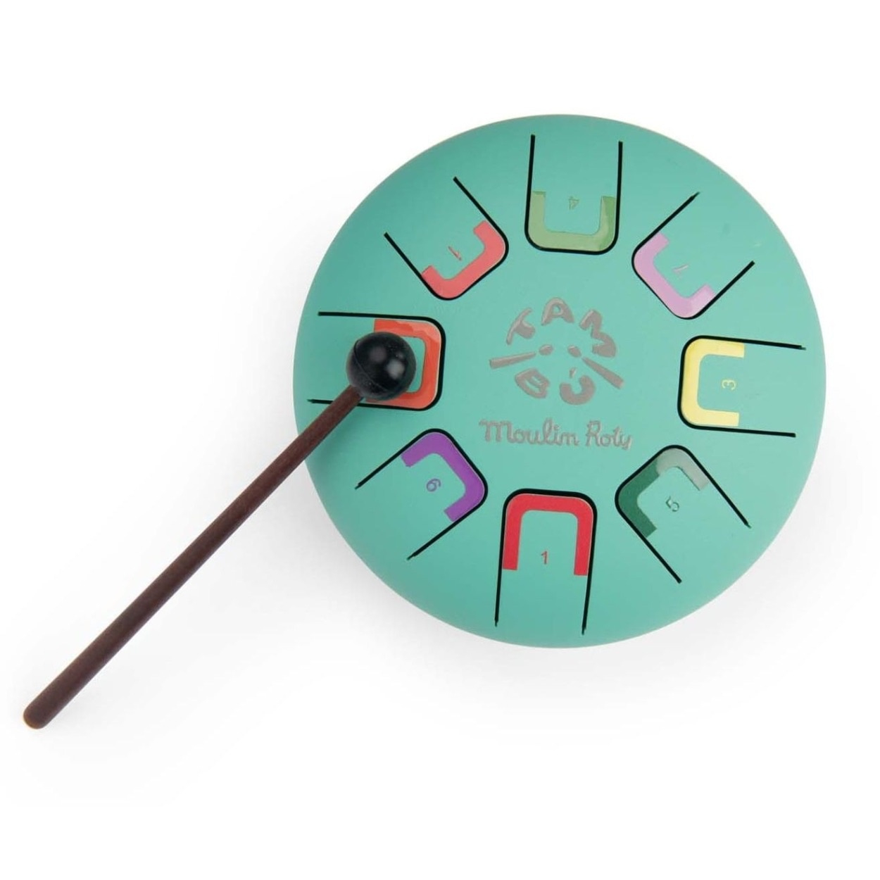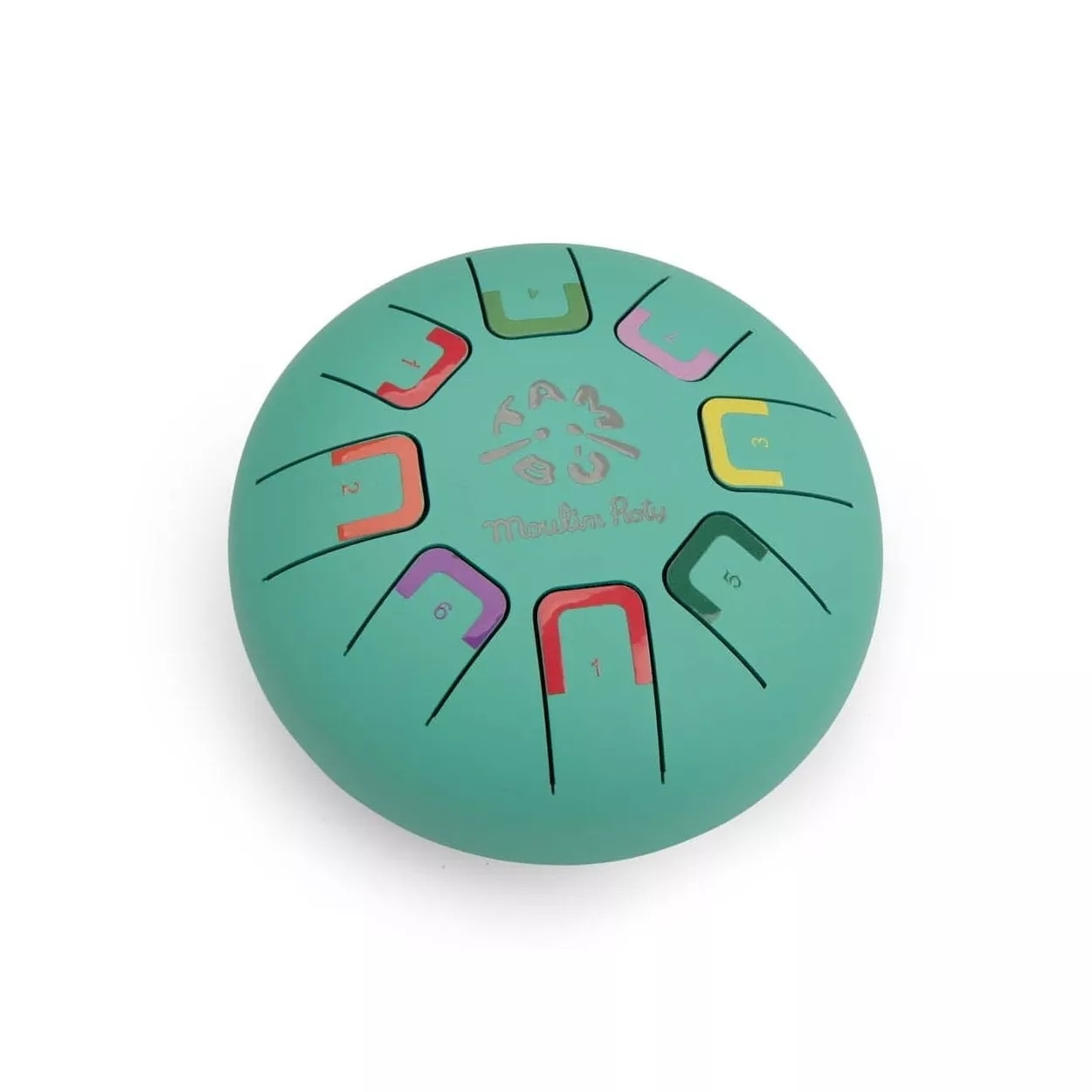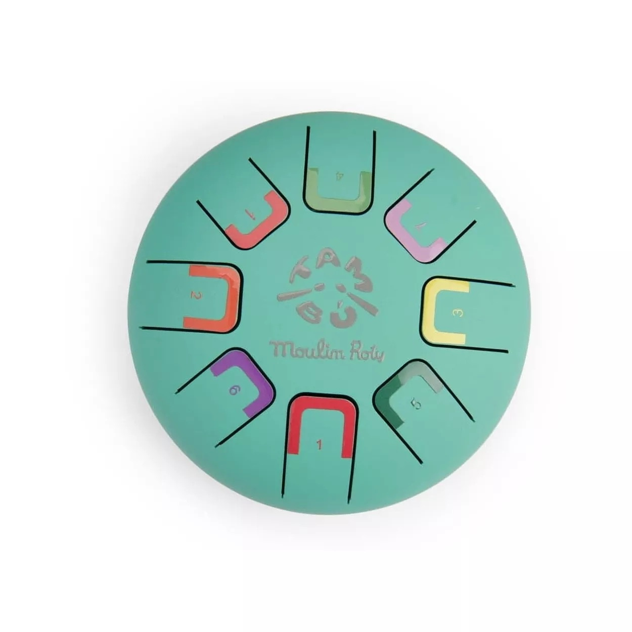 Toba muzicala verde In jungla Un instrument excepțional pentru a introduce copiii în lumea fascinantă instrumentelor de percuție. 8 note codificate prin culori și numere pentru a fi percutate cu mâinile, vârful degetelor sau cu bețe de tobe. Concepută special pentru copii, această tobă metalică are un design prietenos și culori atrăgătoare, fiind un instrument ideal pentru inițierea în muzică și dezvoltarea ritmului. Include un saculeț textil pentru transport și depozitare, un pliant cu partituri si 2 bețe de tobe. Dimensiune tobă: 15 x 9 x 15 cm. Vârsta recomandată: + 3 ani. Se curăță cu o lavetă moale umezită. Material: Oțel, lemn de fag, silicon, plastic ABS. AVERTISMENT: Contraindicat copiilor sub 3 ani. A se folosi strict sub supravegherea unei persoane adulte. Producător Moulin Roty, Franța.