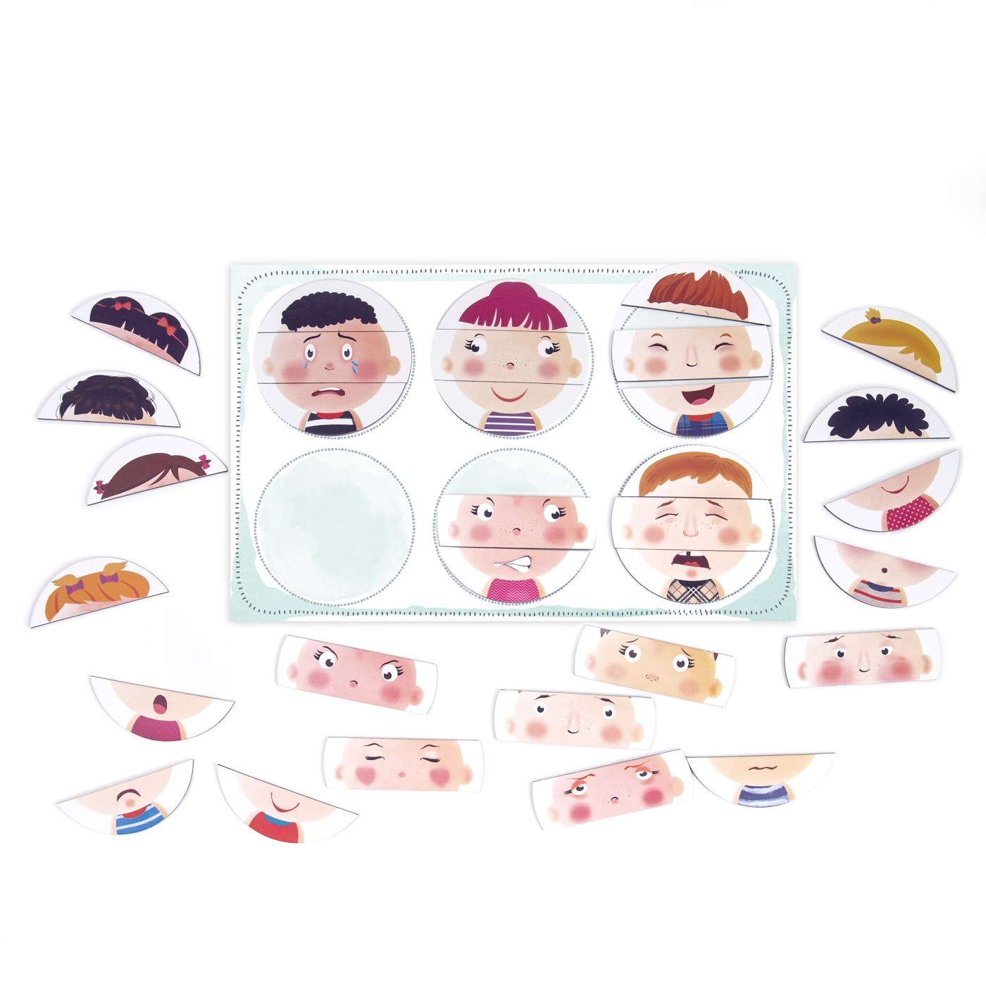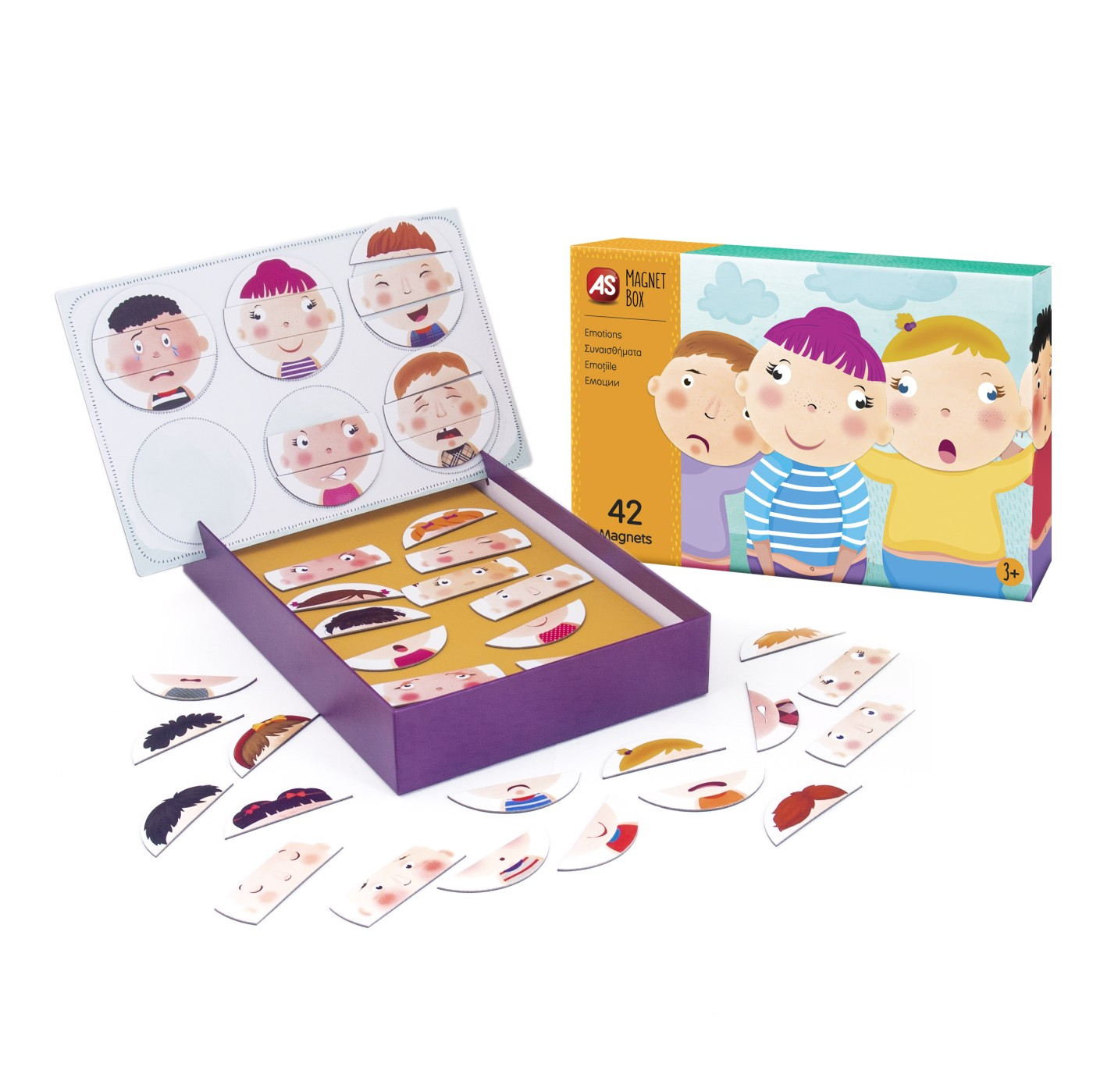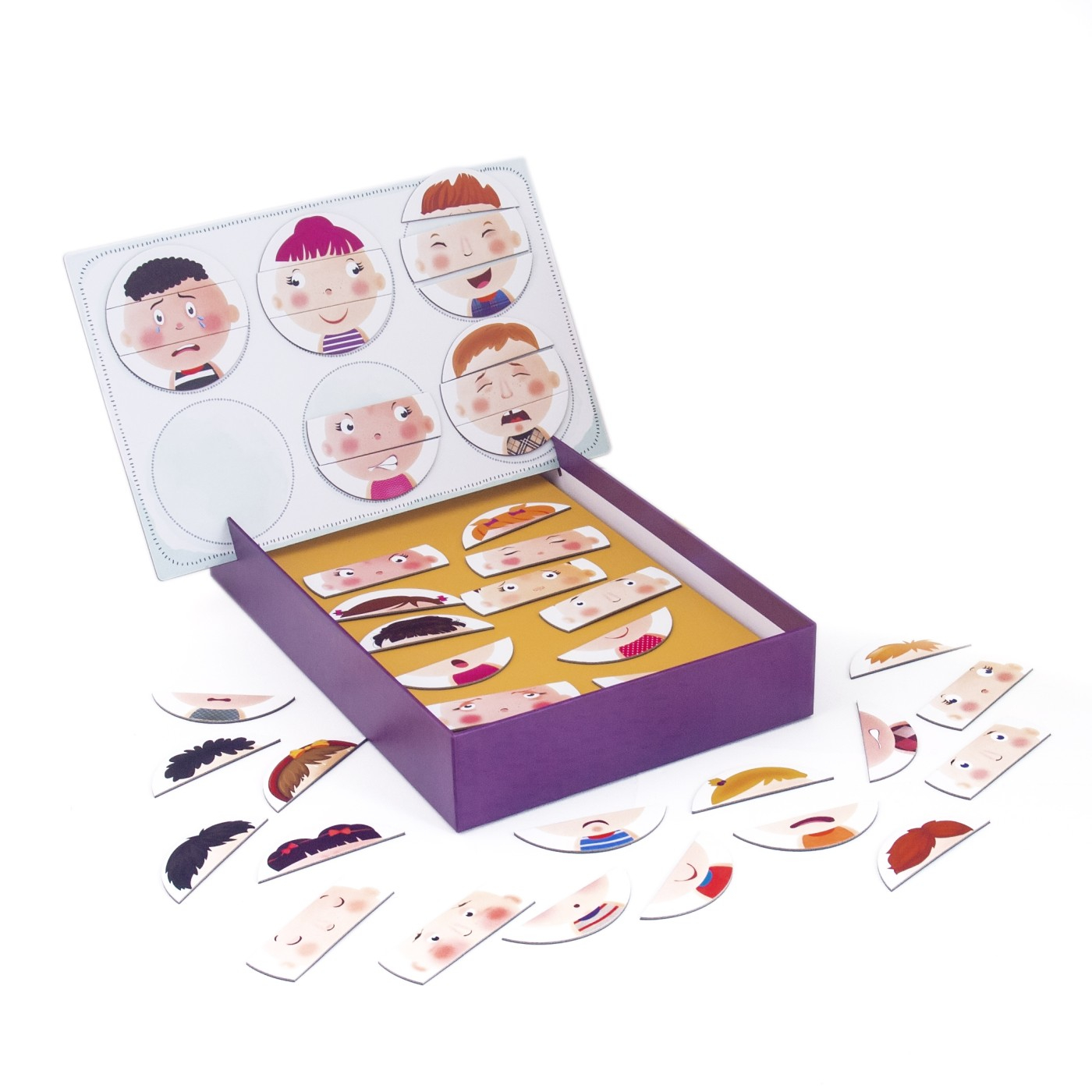 Un joc educational de invatare emotionala cu 42 de magneti de carton. Setul ii familiarizeaza pe copii cu invatarea emotionala, ajutandu-i sa recunoasca mai intai diferitele expresii faciale si apoi, cu ajutorul ghidului ilustrat, sa invete cum se reflecta diferitele emotii umane in expresiile lui.Fiecare magnet descrie diferite caracteristici pentru a reflecta diferite expresii si emotii. Cum arata cineva cand este fericit, trist, furios? Cum se reflecta sentimentul de gelozie, rusine, dragoste asupra unei persoane? Continut: 42 de magneti de carton, tabla magnetica, 1 foaie de hartie pentru invatarea emotiilor. Varsta recomandata 3 ani+.