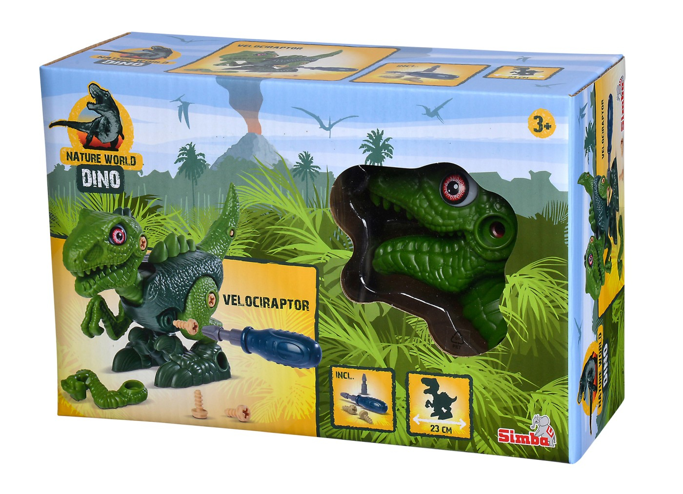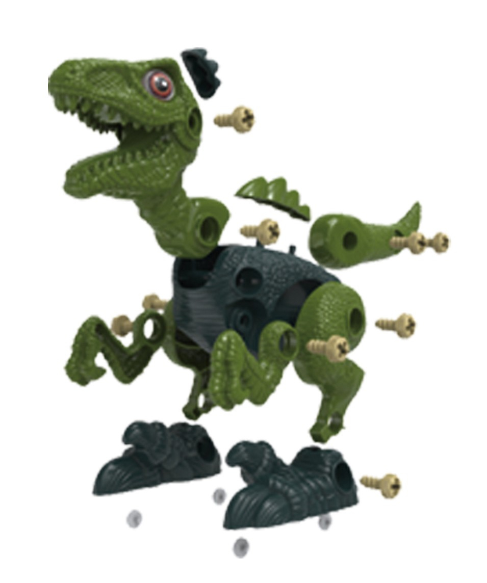 Set dinozauri pentru asamblat, T-Rex, Triceratops sau Velociraptor. Setul include surubelnita, suruburi si manual de asamblare. Lungime intre 21 si 23cm.