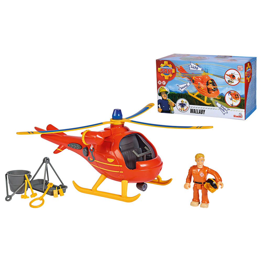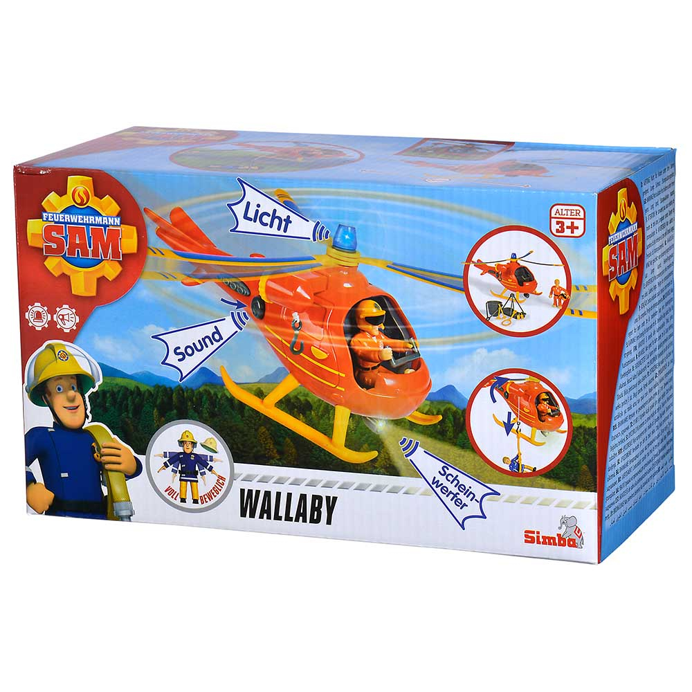 Wallaby, elicopterul de interventie al pompierului Sam. Jucaria este dotata cu efecte luminoase si sonore. Sunt incluse si accesorii precum targa si figurina.