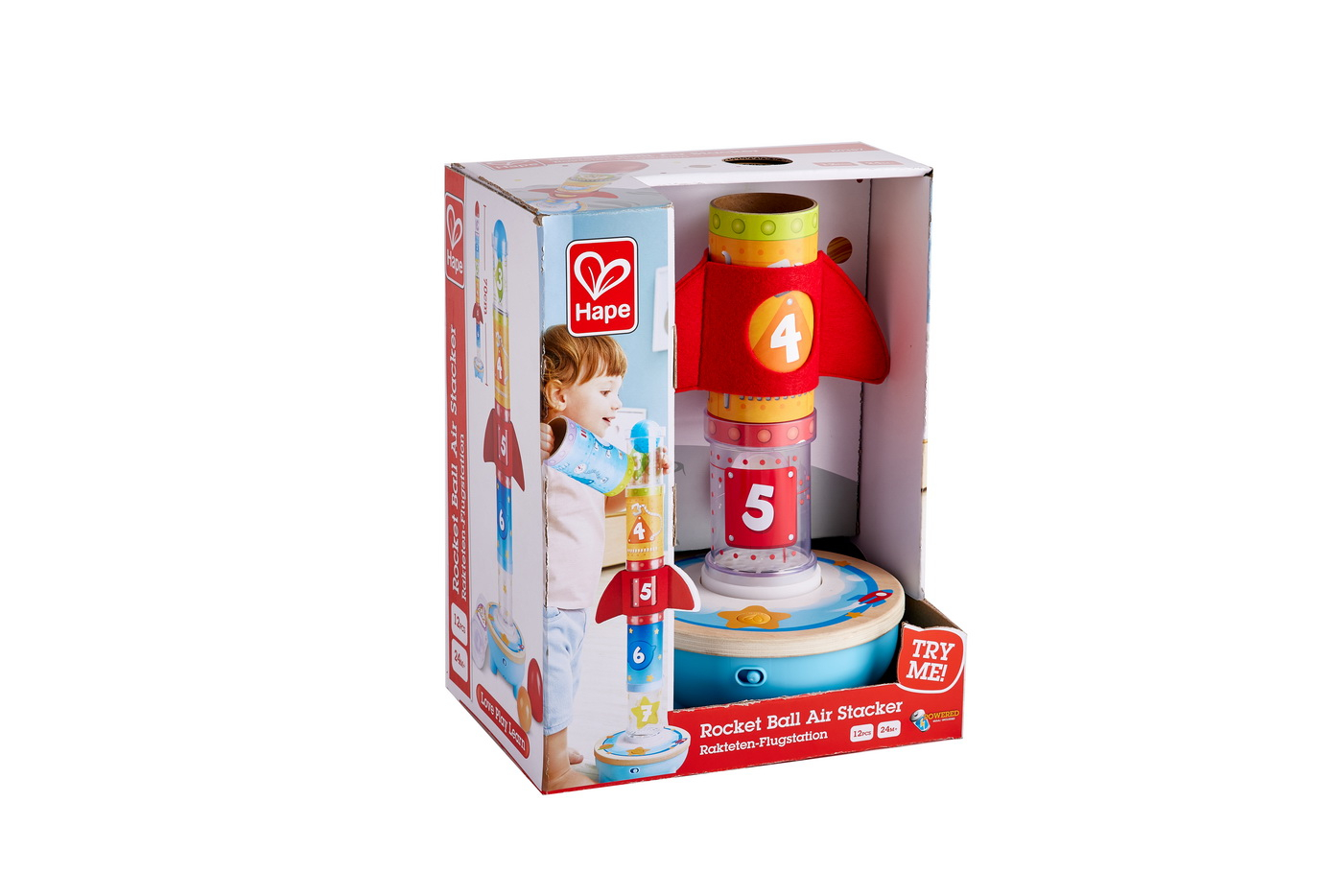 Duceti stivuirea la un nivel complet nou cu acesta fantastica racheta! Asezati mingea in baza, introduceti un tub transparent si porniti ventilatorul, apoi stivati alte tuburi si vedeti mingea zburand spre varf! Jucariile sunt realizate din lemn, folosind materiale ecologice, vopsite in culori atragatoare cu vopsele nontoxice, care depasesc cele mai inalte si stricte standarde internationale de siguranta si calitate, precum EN71, ISO9001, ASTM F963 si altele. De multi ani, Hape a creat jucarii fantastice, de inalta calitate, folosind materiale ecologice si durabile, fiecare produs fiind atent proiectat pentru a stimula abilitatile senzoriale, fizice si emotionale.