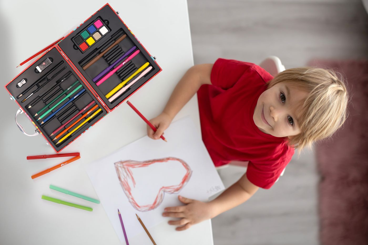Indiferent cate culori ai, niciodata nu vor fi suficiente pentru a da viata imaginilor tale preferate! Cu Trusa de lux pentru desen, poti explora creativitatea fara limite, avand la dispozitie 50 de accesorii pentru desen si pictura, perfecte pentru a invata diferite tehnici artistice. Toate materialele sunt organizate intr-o trusa eleganta, cu maner practic, pe care o poti lua cu tine oriunde mergi – acasa, la scoala sau in vacanta. Setul include: 10 markere lavabile, 10 creioane colorate, 8 acuarele, 18 coli de colorat, 1 creion de desen, 1 pensula, 1 radiera, 1 ascutitoare. Un set complet, ideal pentru tinerii artisti care vor sa experimenteze, sa creeze si sa se distreze in lumea culorilor!