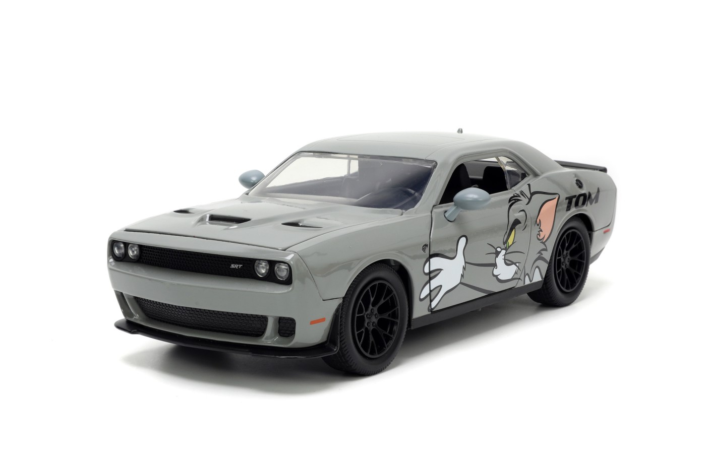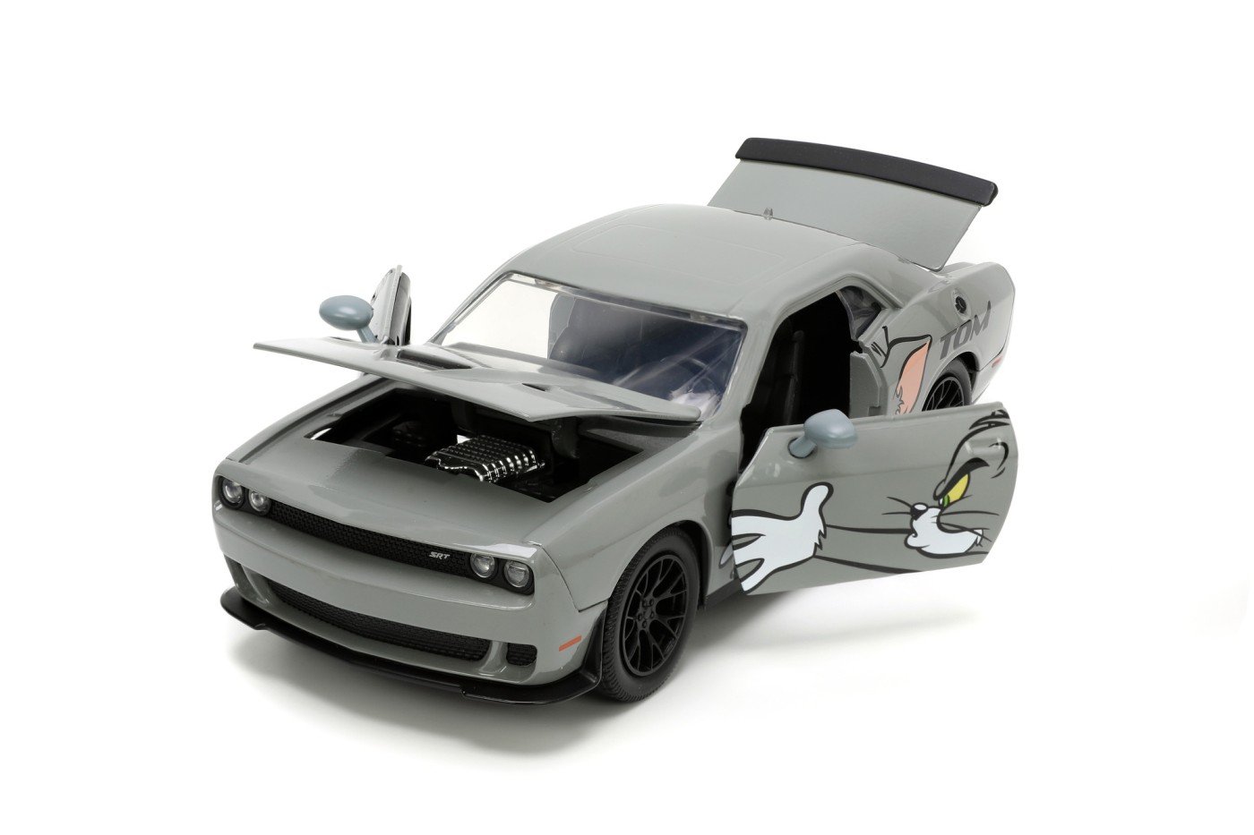 Masinuta din metal Dodge Challenger, cu usi, capota si portbagaj ce se pot deschide si figurina din metal Jerry, scara 1:24. Ce plimbare mai buna pentru pisica suprema, Tom, decat un Hellcat? Acest Dodge Challenger Hellcat 2015 1:24 a fost facut pentru Tom. Crezi ca Jerry il poate depasi?