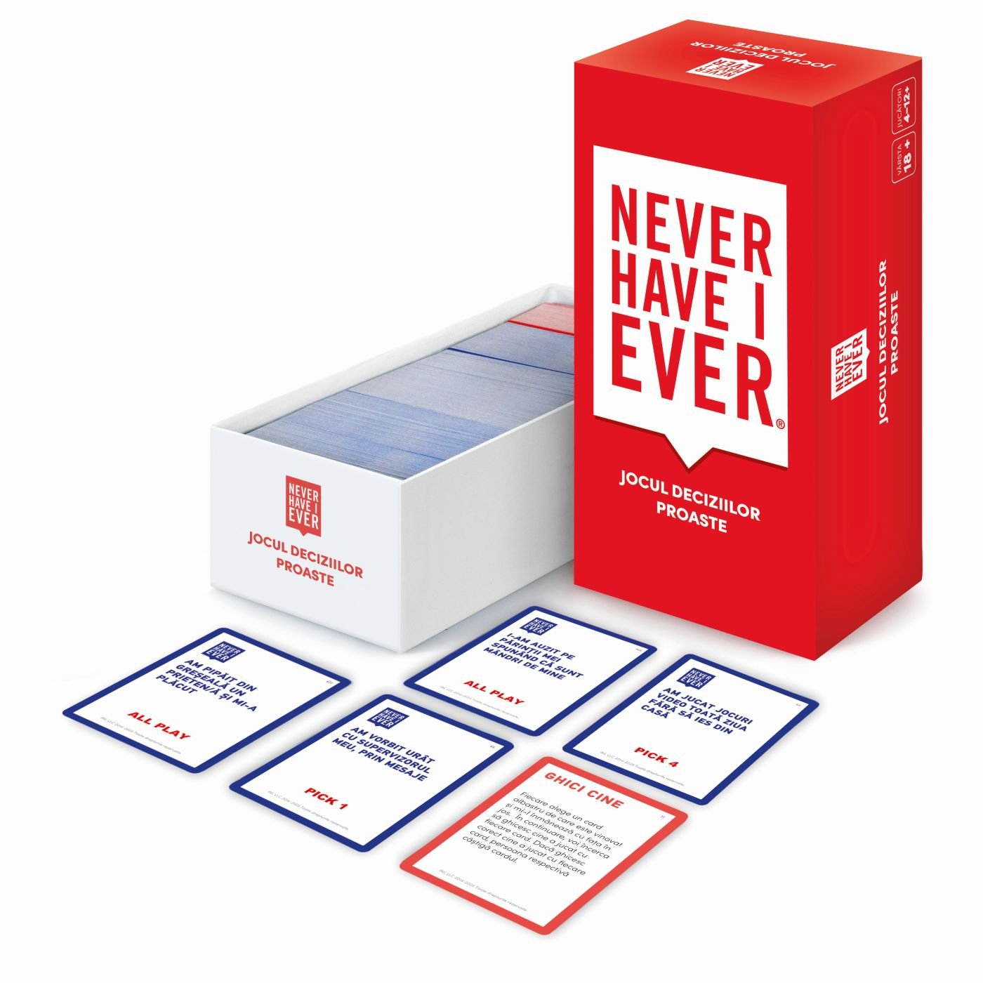 Jocul deciziilor proaste este jocul ideal pentru serile intre adulti care nu se tem sa recunoasca aventurile, greselile si momentele amuzante din trecut! Simplu, sincer si plin de rasete, acest joc te provoaca sa spui adevarul despre cele mai nebunesti experiente pe care le-ai trait (sau nu). Fiecare runda dezvaluie povesti neasteptate si reactii memorabile, transformand orice seara intr-o experienta de neuitat. Perfect pentru petreceri sau seri intre prieteni, Never Have I Ever este jocul in care sinceritatea si umorul se intalnesc intr-o combinatie exploziva. Continut strict pentru adulti – 18+. Jocul deciziilor proaste... pe care toata lumea le-a luat cel putin o data!