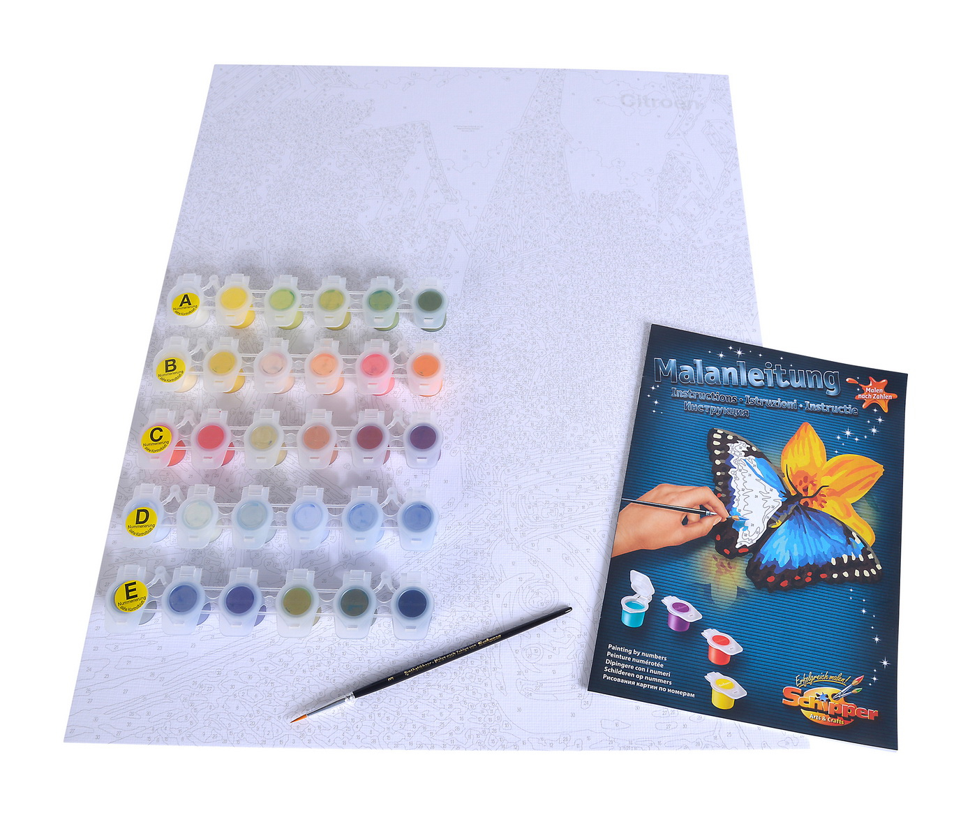 Acest set de pictura pe numere are o dimensiune 40x50 cm si este din carton cu textura din panza, cu desen conturat in numere. Culorile si pensula sunt incluse. Culorile acrilice des utilizate in realizarea picturilor artistice ce nu necesita amestecare cu apa, culorile se gasesc in tuburi de plastic ce au atasate numere corespunzatoare conturului desenat pe panza, tabloul se poate agata ulterior pe perete. Fiecare zona este marcata cu numere ce corespund unei anumite culori. Completati fiecare zona si in cele din urma imaginea va aparea ca un tablou finit. "Picturi pe Numere" este primul pas perfect pentru incepatori, pentru ca si acestia sa se bucure de pictura. Pictura odata terminata se poate pune in rama. Ramele nu sunt incluse in set. Ele se pot achizitiona, optional si separat. Produsul este comercializat sub brandul german Schipper fiind fabricat la inalte standarde de calitate, in Germania.