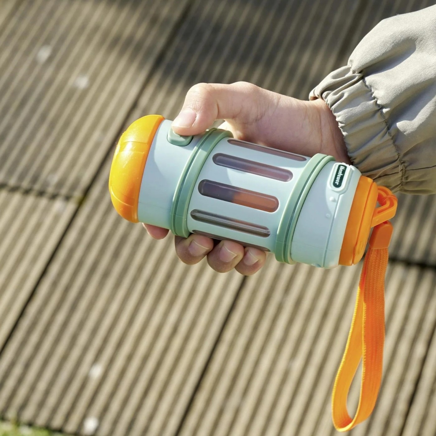 Lanterna 2 in 1 pentru copii - Echipata perfect pentru fiecare aventura: Aceasta lanterna inovatoare pentru copii comuta de la un fascicul focalizat la o lumina panoramica confortabila prin simpla apasare a unui buton. Întotdeauna la indemana - Cu o lungime de 13 cm si o curea practica pentru incheietura mainii, lanterna poate fi luata oriunde - ideala pentru deplasari! Necesita doua baterii R6 de 1,5 V (nu sunt incluse). Pentru interior si exterior - Fie ca este in camera copiilor, in camping sau intr-o expeditie mare in natura: Lanterna pentru copii Scout insoteste copiii in toate explorarile lor curioase. Design prietenos cu copiii - Creata pentru micii aventurieri: Carcasa colorata si robusta si utilizarea usoara fac din aceasta lanterna cool companionul ideal pentru copiii cu varsta de 5 ani si peste.