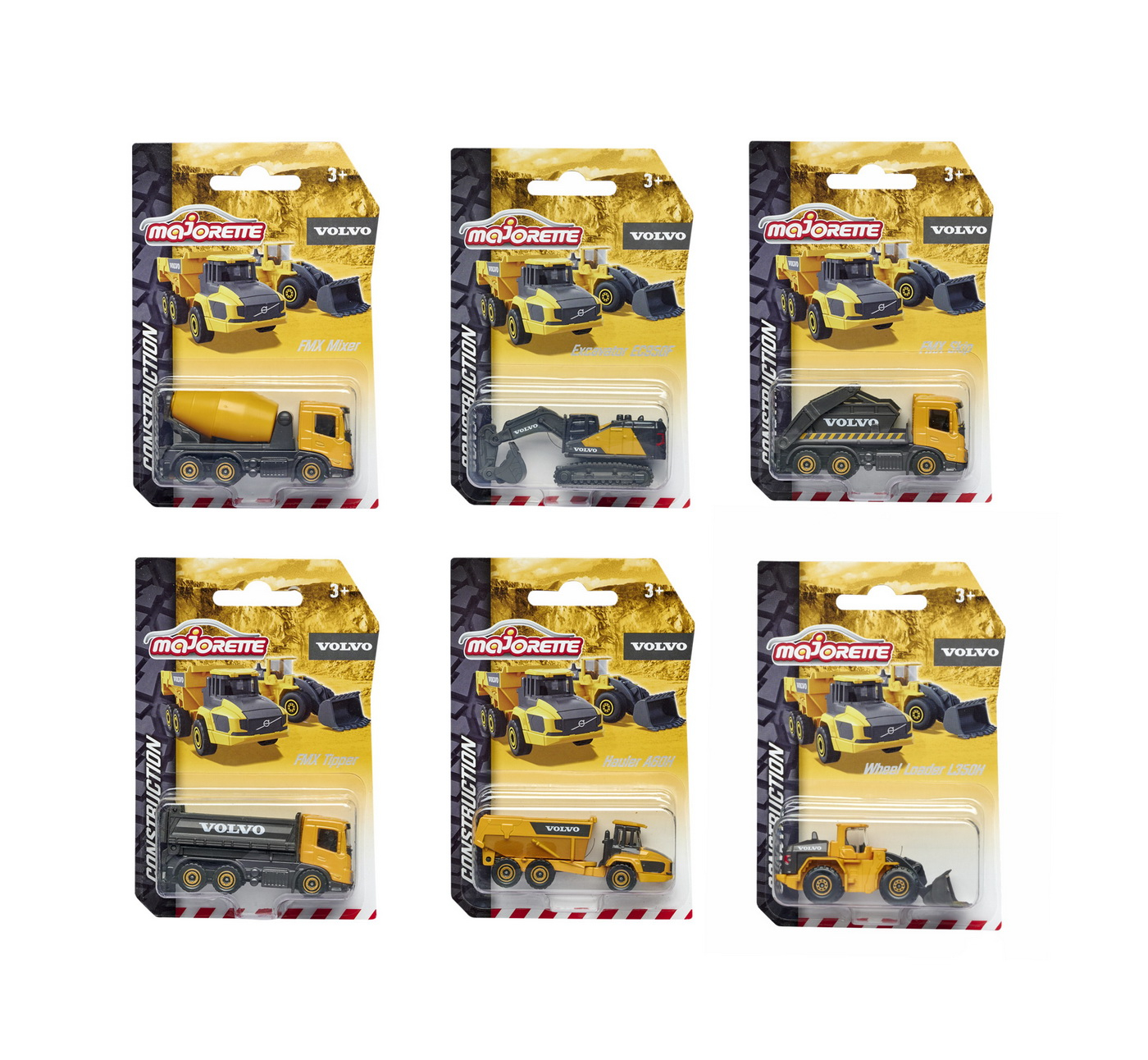 Vehicule de constructii Majorette Volvo - du-ti santierul de jucarie la urmatorul nivel!Copiii mici sunt fascinati de santierele de constructii. Cu seria Volvo Construction, poti realiza visele micutului tau. Conceput pentru copiii cu varsta de 3 ani si peste, aceste vehicule de constructie colorate sunt un must-have pentru toti colectionarii de vehicule si fanii turnate sub presiune. Cele sase modele uimitoare includ un excavator pe senile, un incarcator pe roti, o autobasculanta, o autobasculanta articulata, o betoniere si un camion. Sunt completarea perfecta pentru santierele de constructie de jucarii si, datorita designului lor foarte detaliat, sunt, de asemenea, articole excelente de colectie. Masinile de jucarie din metal sunt garantate sa va aduca multi ani de placere si dispun de roti rotative pentru manevrare usoara. Datorita pieselor mobile, vehiculele pot fi folosite intr-o gama larga de scenarii de joaca imaginare, fie in interior, acasa, fie in aer liber, in cartierul cu nisip.